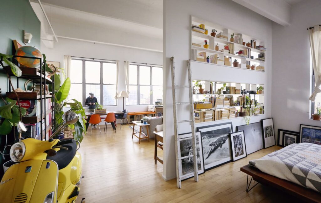 Η συγγραφέας και δημοσιογράφος των New York Times, Jessica Bennett, και ο σύζυγός της Sam Slaughter, ιδρυτής του δημιουργικού γραφείου Lighthouse Creative Group, ζουν σε ένα ανοιχτό και ευάερο loft, σε ένα κτίριο με… ενδιαφέρον υπόβαθρο. Η Jessica και ο Sam εξηγούν ότι είναι «κατοικία από το 2004, και σχεδόν αμέσως μετά τέθηκε υπό πλειστηριασμό. Έχουμε μια φίλη που έμενε εδώ εκείνη την εποχή. Το λάτρευε, αλλά θυμάται πιτσιλιές αίματος στο ασανσέρ και φωνές μεταξύ γειτόνων που έπρεπε να διαλυθούν από την αστυνομία. Τα διαμερίσματα υποδιαιρέθηκαν σε ένα εκατομμύριο υπνοδωμάτια, χτισμένα το ένα πάνω στο άλλο λόγω των ψηλών οροφών. Τελικά, ο ιδιοκτήτης του κτιρίου βρέθηκε νεκρός».
