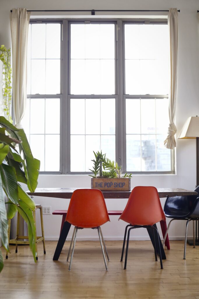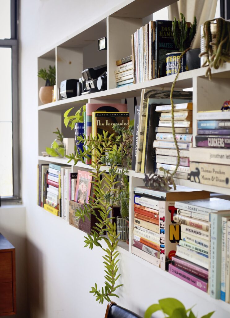 Ένοικιάζοντας το λοφτ των 84 τετραγωνικών μέτρων, έχουν μεταμορφώσει το βιομηχανικό εσωτερικό του με μια συλλογή από άνετα έπιπλα εμπνευσμένα από τη σύγχρονη εποχή των μέσων του αιώνα, βιβλία, δίσκους, φυτά και περισσότερα από ένα γραφεία.