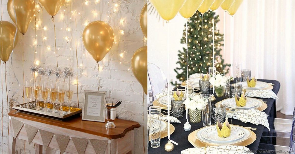 Τίποτα δεν λέει «γιορτή» όπως τα μπαλόνια, ειδικά όταν συνδυάζονται με φωτάκια για μια παιχνιδιάρικη πινελιά. Σκεφτείτε χρυσά μπαλόνια κρέμονται από την οροφή, λαμπυρίζοντας με φόντο τα φωτάκια που δημιουργούν μια ζεστή και μαγική ατμόσφαιρα. Αν έχετε λίγο χρόνο, αυτή η διάταξη είναι ιδανική. Απλώς τοποθετήστε τα σε έναν άδειο τοίχο ή χρησιμοποιήστε τον ως φόντο φωτογραφιών για να ενθαρρύνετε τους καλεσμένους σας να βγάλουν φωτογραφίες, μετατρέποντας τον χώρο σας σε ένα μέρος κατάλληλο για Instagram. Μπορείτε, επίσης, να χρησιμοποιήσετε μπαλόνια στο τραπέζι, με βαράκια, για έξτρα γιορτινή διάθεση.