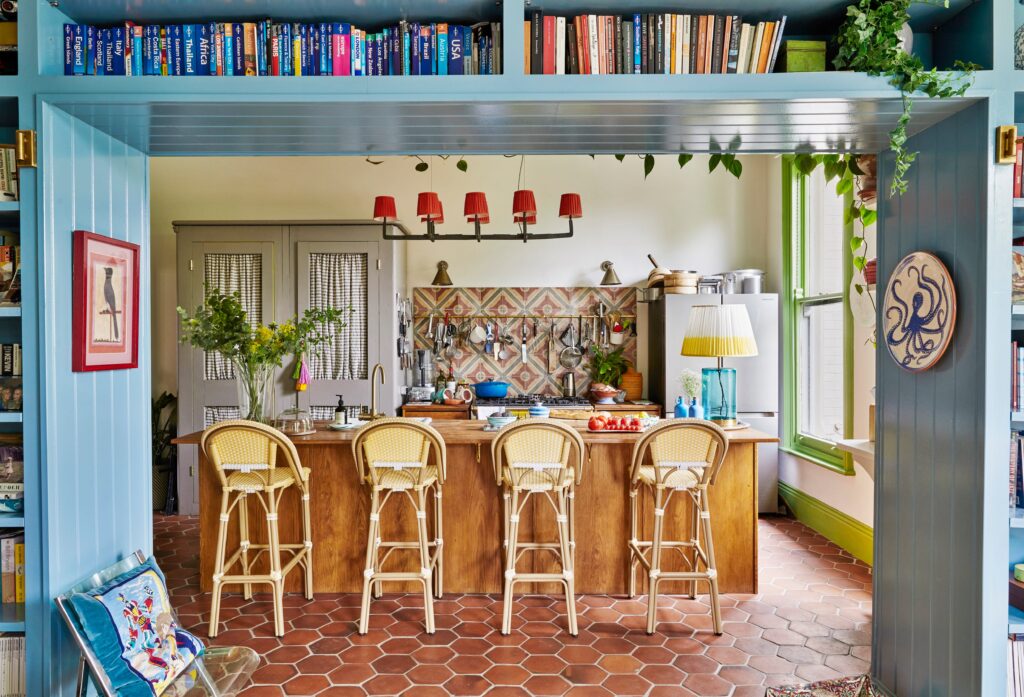 Οι μεγάλες καμάρες αποτελούν έναν ολοένα και πιο δημοφιλή τρόπο για να διαχωρίσετε μια κουζίνα από ένα σαλόνι, διατηρώντας παράλληλα μια ανοιχτή διαρρύθμιση. Ενώ κάποτε θα μπορούσαν να είναι γύψινες, τώρα έχουν σχεδιαστεί με ενσωματωμένα ράφια που πλαισιώνουν κάθε πλευρά και συνεχίζουν από πάνω. Γεμάτες βιβλία, μπιχλιμπίδια και έργα τέχνης, είναι ιδιαίτερα κατάλληλες σε μαξιμαλιστικά σπίτια, όπως αυτό το διαμέρισμα στο Νότιγχαμ που ανήκει στην διακοσμήτρια εσωτερικών χώρων Jodie Hazlewood.