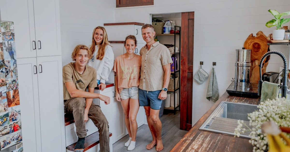 Σε αυτή την ξενάγηση, αυτή η τετραμελής οικογένεια μας καλωσορίζει στο όμορφο και ευρύχωρο μικροσκοπικό σπίτι. Μοιράζονται την ιστορία για το πώς η μείωση του μεγέθους από ένα σπίτι 121 τετραγωνικών μέτρων μείωσε δραστικά τα μηνιαία τους έξοδα από πάνω από $2.400 σε μόλις $700, δίνοντάς τους την ελευθερία να ξεκινήσουν τη δική τους επιχείρηση κατασκευής μικροσκοπικών σπιτιών. Αυτό το μικροσκοπικό σπίτι με ρόδες, πλάτους 3 μέτρων, αποτελεί ένα αριστούργημα στον λειτουργικό οικογενειακό σχεδιασμό. Τοποθετώντας το υπνοδωμάτιο των γονιών στον κύριο όροφο και δίνοντας σε κάθε έφηβο παιδί τους τη δική του ιδιωτική σοφίτα, δημιούργησαν μια διαρρύθμιση που προσφέρει τόσο ιδιωτικότητα όσο και σύνδεση. Ο σχεδιασμός δίνει προτεραιότητα στον ανοιχτό χώρο και το φυσικό φως, με ψηλά ταβάνια και μεγάλες γυάλινες πόρτες.