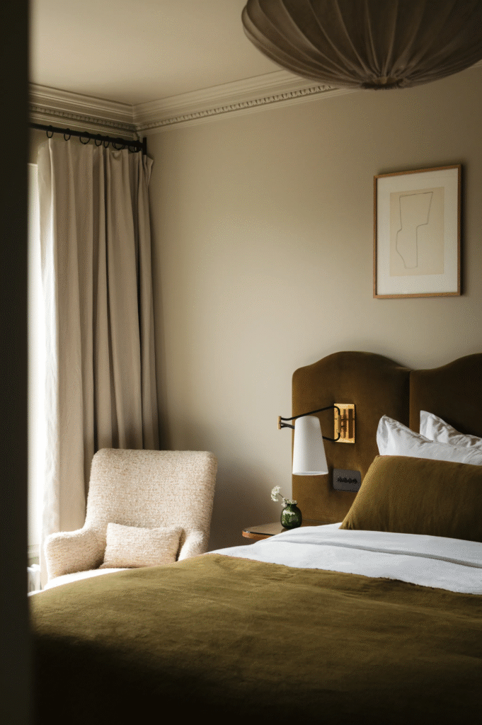 Ενώ η Emma και η πελάτισσά της στρέφονται σε μια μοντέρνα αισθητική, δεν στερείται ευαισθησίας για την ηλικία και την αρχιτεκτονική του κτιρίου. Για το σκοπό αυτό, επανέφερε αυθεντικές λεπτομέρειες, όπως το γείσο στο επίσημο σαλόνι που είχε αφαιρεθεί προηγουμένως, και τα πάνελ στους τοίχους για να πλαισιώσουν τα έργα τέχνης των πελατών.