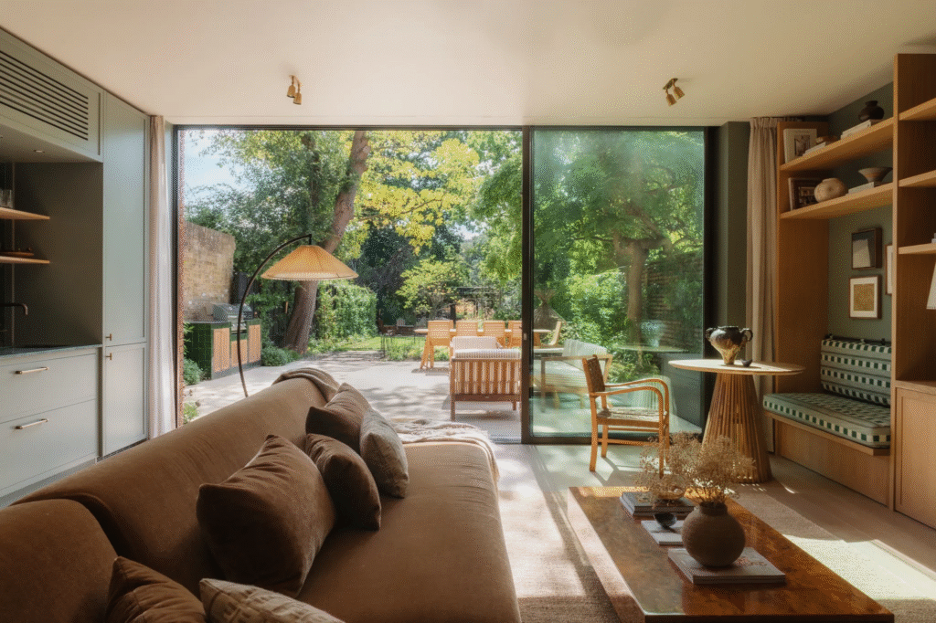 Υπήρξε μια καθοριστική στιγμή όταν η διακοσμήτρια εσωτερικών χώρων Emma Shone- Sanders, η οποία διορίστηκε πρόσφατα για να δώσει ζωή σε αυτή την οικογενειακή μεζονέτα στο Λονδίνο, ήξερε ότι επρόκειτο να ξεκινήσει κάτι πολύ ξεχωριστό. Οι εργασίες κατασκευής είχαν ξεκινήσει για αρκετούς μήνες πριν η Emma προσληφθεί και, όταν το επισκέφτηκε για πρώτη φορά, μπήκε σε αυτό που ήταν ακόμα ένα εργοτάξιο. «Ολόκληρο το πίσω μέρος του σπιτιού είχε γκρεμιστεί» θυμάται. «Ήταν εκτεθειμένο και ανοιχτό σε έναν τεράστιο κήπο που έβλεπε σε ένα κοινόχρηστο χώρο. Οι ιδιοκτήτες μού είπαν ότι σχεδίαζαν να εγκαταστήσουν ένα τεράστιο παράθυρο και μπορούσα αμέσως να δω τι απίστευτη θέα θα ήταν από τη στιγμή που θα έμπαινα από την πόρτα. Ήξερα ότι θα ήταν καταπληκτικό και ενθουσιάστηκα πολύ».