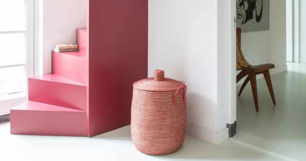 Η πιο κάτω εικόνα δείχνει ένα εσωτερικό χώρο σχεδόν ολοκληρωτικά λευκό, όπου το βλέμμα τραβά αμέσως μια εντυπωσιακή, γλυπτική σκάλα σε κόκκινο χρώμα. Η μορφή της θυμίζει περισσότερο αρχιτεκτονικό αντικείμενο ή εγκατάσταση τέχνης παρά μια συμβατική σκάλα. Το χρώμα της είναι έντονο, ζεστό και κορεσμένο, σε πλήρη αντίθεση με το λευκό των τοίχων και του δαπέδου. Αυτή η αντίθεση την κάνει το απόλυτο σημείο εστίασης του σπιτιού: δεν «χάνεται» στο φόντο, αλλά δηλώνει δυναμικά την παρουσία της. Το κόκκινο προσθέτει βάθος και χαρακτήρα, ενώ σπάει τη μονοχρωμία του λευκού χωρίς να χρειάζονται πολλά άλλα διακοσμητικά στοιχεία.