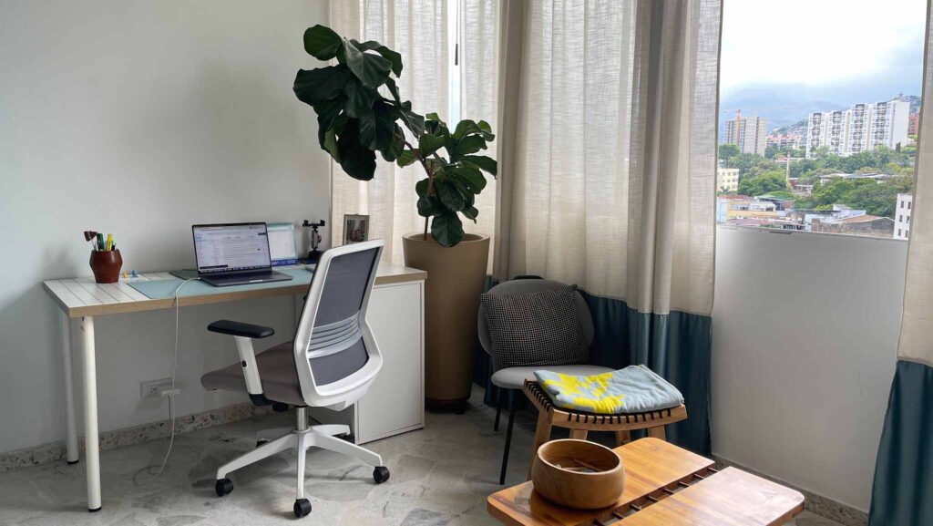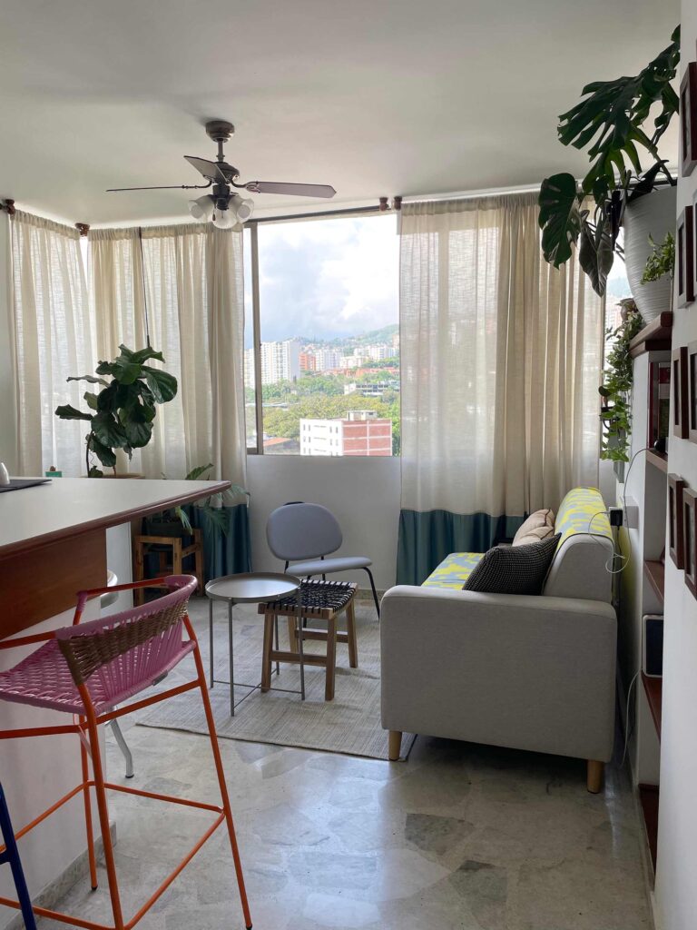 Αυτό το διαμέρισμα 42 τετραγωνικών μέτρων στην Κάλι της Κολομβίας, ήταν ένας εντελώς λευκός καμβάς όταν η διακοσμήτρια εσωτερικών χώρων Natalia Flórez, ιδιοκτήτρια του στούντιο εσωτερικής διακόσμησης Florez Atelier, μετακόμισε πριν από περίπου δύο χρόνια. Oι τοίχοι ήταν όλοι λευκοί και οι πόρτες και τα υπάρχοντα έπιπλα ήταν από ξύλο καρυδιάς, αλλά της άρεσε πολύ που τα πατώματα ήταν από μάρμαρο και ότι υπήρχε πανοραμική θέα στην Κάλι, την πόλη καταγωγής της.