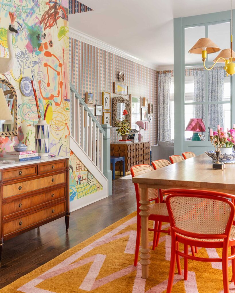 «Αυτό το σπίτι είναι πλέον μια ερωτική επιστολή προς την οικογένειά μας και ένα ζωντανό αρχείο της ιστορίας μας» ξεκινά η Mary Kathryn Wells, ιδρύτρια και διευθύντρια του Mary Kathryn Wells Design, ενός στούντιο εσωτερικής διακόσμησης που ειδικεύεται σε «χαρούμενα, ιδιαίτερα προσωπικά σπίτια για οικογένειες που αγαπούν τα χρώματα». Ακριβώς αυτό που δημιούργησε στο οικογενειακό σπίτι που μοιράζεται με τον σύζυγό της, Chris Vinyard, και τα τρία παιδιά τους (ηλικίας 12, 10 και 7 ετών), καθώς και έναν σκύλο και δύο ινδικά χοιρίδια.