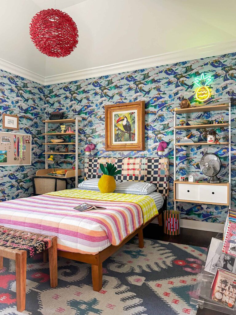 «Το ανακαινίσαμε το 2024 για να ταιριάξει καλύτερα με την οικογένειά μας σε αυτό το κεφάλαιο της ζωής, καθώς και για να αναβαθμίσουμε το σπίτι και να το κάνουμε να φαίνεται πραγματικά ξεχωριστό. Τώρα είναι ένας πολυεπίπεδος, πολύχρωμος, βαθιά προσωπικός χώρος που αντανακλά τις ζωές και τις προσωπικότητες των πέντε ανθρώπων που ζουν εδώ. Υπάρχει πλέον μια σημαντική οικογενειακή ιστορία γραμμένη στους τοίχους: έργα τέχνης παιδιών που έχουν μετατραπεί σε ταπετσαρίες και δωμάτια που έχουν αλλάξει και προσαρμοστεί καθώς τα παιδιά μας έχουν μεγαλώσει. Είναι ένα σπίτι που έχει διαμορφωθεί από τη ζωή της οικογένειάς μας και αυτό είναι που το κάνει ξεχωριστό για εμάς» εξηγεί η Mary Kathryn.