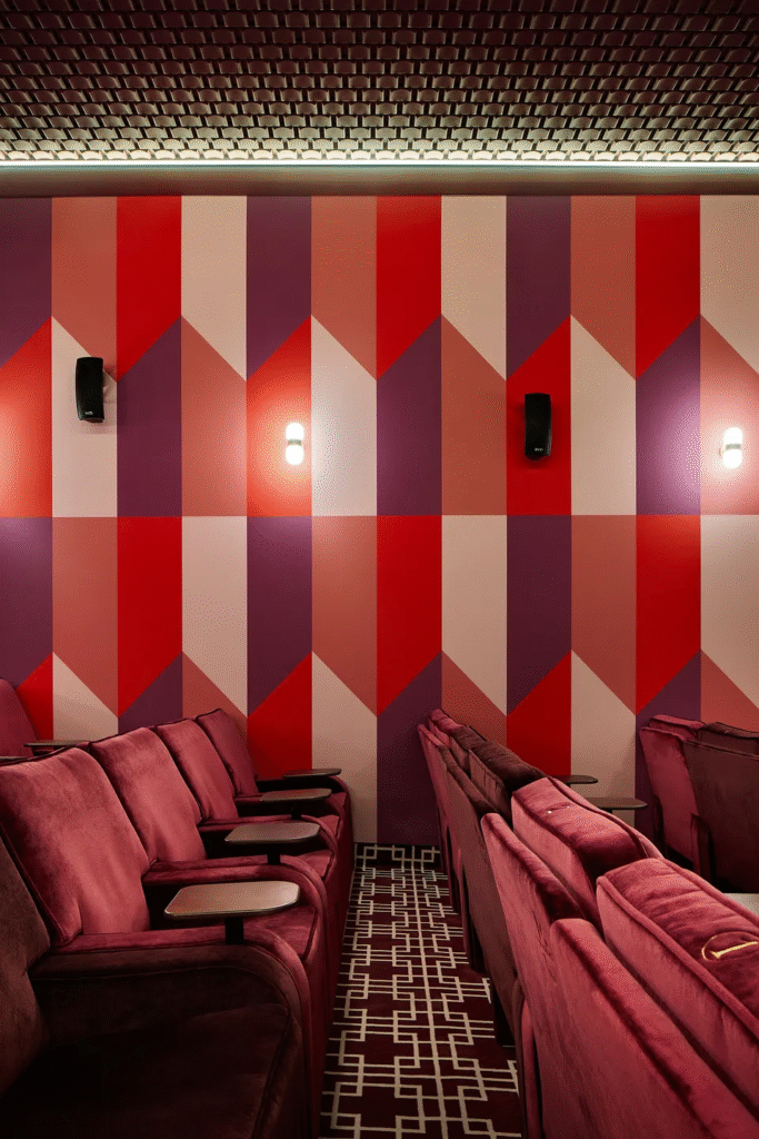 Επιλέξτε το The Studio για ένα συναρπαστικό, νοσταλγικό κινηματογραφικό ταξίδι, με ρυθμούς από καλειδοσκόπιο, δαμασκηνί, κόκκινα και κρεμ μοτίβα τόσο στα πατώματα όσο και στους τοίχους. Επιλέξτε το πιο ευάερο Auditorium για μια απαιτητική παρακολούθηση, που θα απολαύσετε καλύτερα με φίλους που γελούν ανάμεσα σε σειρές καθισμάτων από πράσινο βελούδο Prada. Και, τέλος, αλλά εξίσου σημαντικό, απολαύστε το The Club για μια ηλεκτρισμένη βραδινή έξοδο.