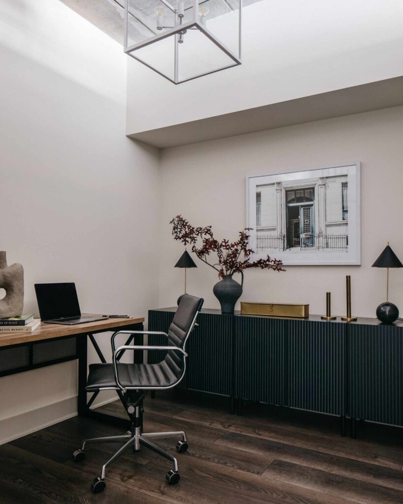Αρχιτεκτονικά στοιχεία όπως οι ψηλές, τσιμεντένιες οροφές, οι εκτεθειμένοι αγωγοί και οι ηλεκτρικές εγκαταστάσεις, και η συνολικά ψηλή ατμόσφαιρα ήταν αυτά που τράβηξαν περισσότερο τον Eric στον χώρο των 102 τετραγωνικών μέτρων με δύο υπνοδωμάτια. «Για μένα, αυτός ο χώρος είναι τέλειος και βρίσκεται σε ιδανική τοποθεσία για να περπατήσετε μέχρι το γυμναστήριο, τα τοπικά μπαρ, τα παντοπωλεία κ.λπ.» λέει.