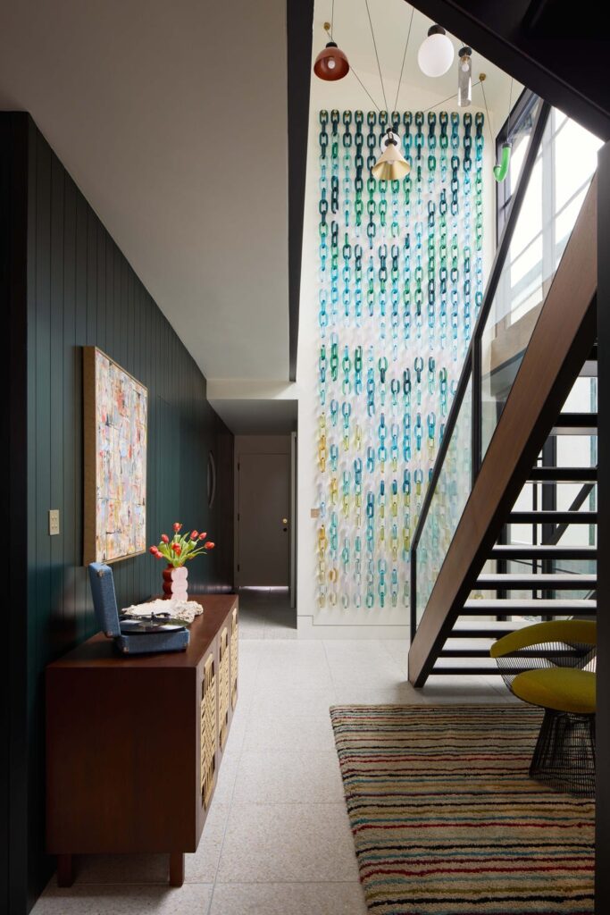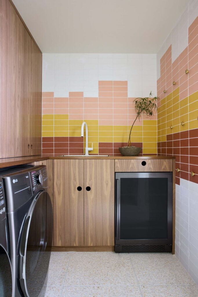 Στιγμές ελαφρότητας και προσωπικότητας ήταν συνυφασμένες σε όλο το σπίτι, από τους γάντζους πλυντηρίου που γράφουν την αγαπημένη φράση του ιδιοκτήτη μέχρι τα έργα τέχνης που κρέμονται παντού. Πρόκειται για ένα σπίτι που καταλαβαίνει πώς ζουν οι άνθρωποι στην πραγματικότητα τώρα και προσαρμόζεται ακριβώς σε αυτό. Οι δύο κουζίνες επιτρέπουν σε πολλαπλές ομάδες να συνυπάρχουν άνετα, οι ειδικές ζώνες δημιουργούν ιδιωτικότητα μέσα σε ένα κοινό αποτύπωμα και η προσεγμένη ανθεκτικότητα είναι συνυφασμένη με κάθε απόφαση, από τα δάπεδα από μωσαϊκό μέχρι τα ειδικά κατασκευασμένα ντουλάπια. Ωστόσο, παρά τη λειτουργική του ικανότητα, το σπίτι δεν παίρνει ποτέ τον εαυτό του πολύ στα σοβαρά. Τα κορεσμένα χρώματα, τα παιχνιδιάρικα πλακάκια και τα γεμάτα προσωπικότητα μοτίβα διασφαλίζουν ότι οι χώροι αισθάνονται εκφραστικοί και βαθιά ανθρώπινοι.