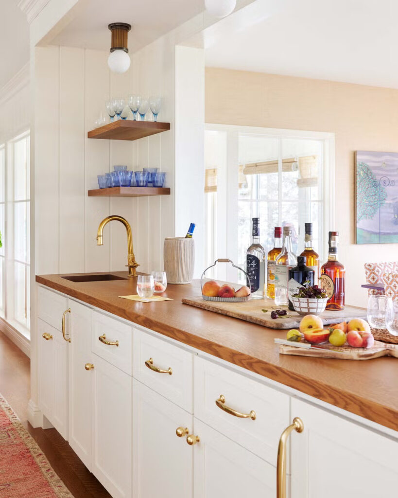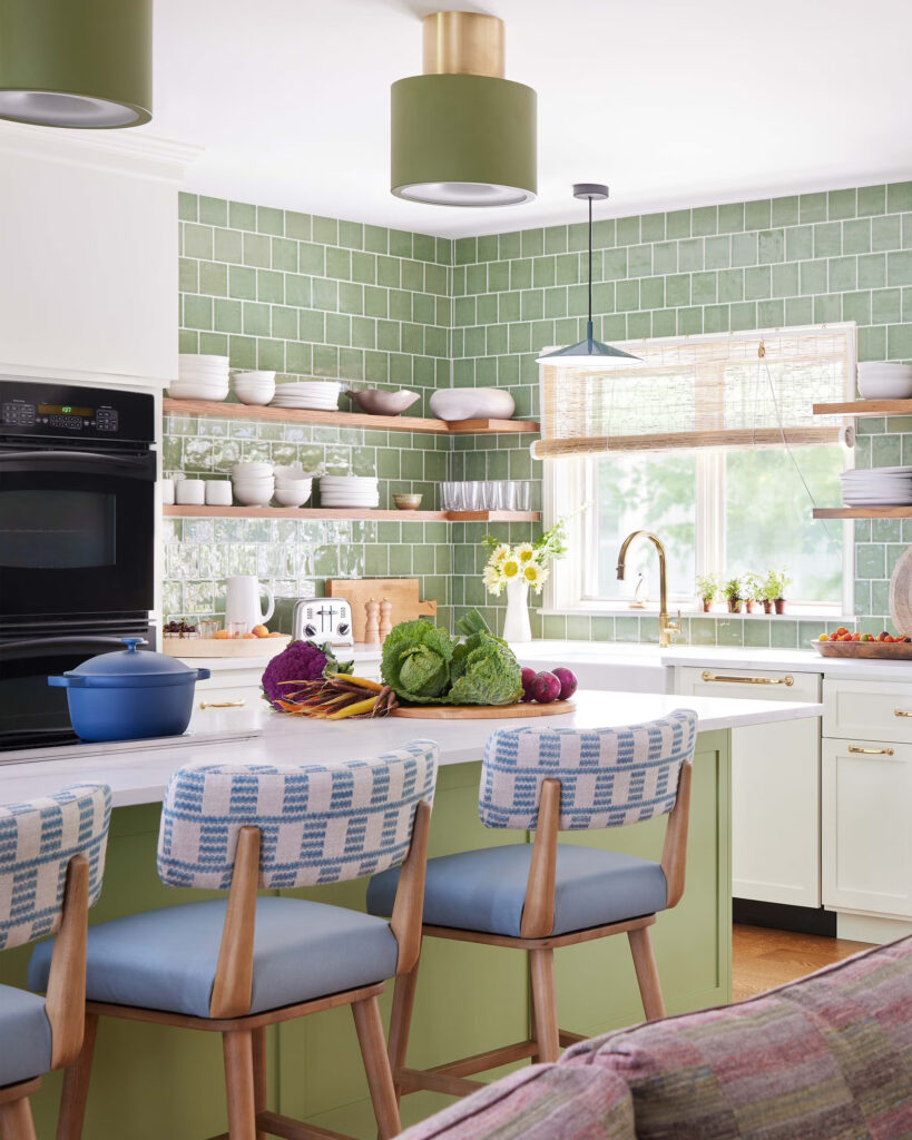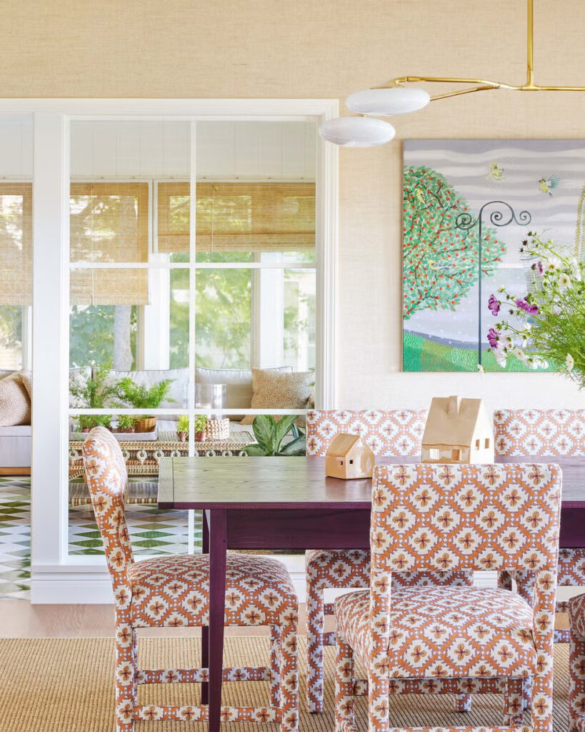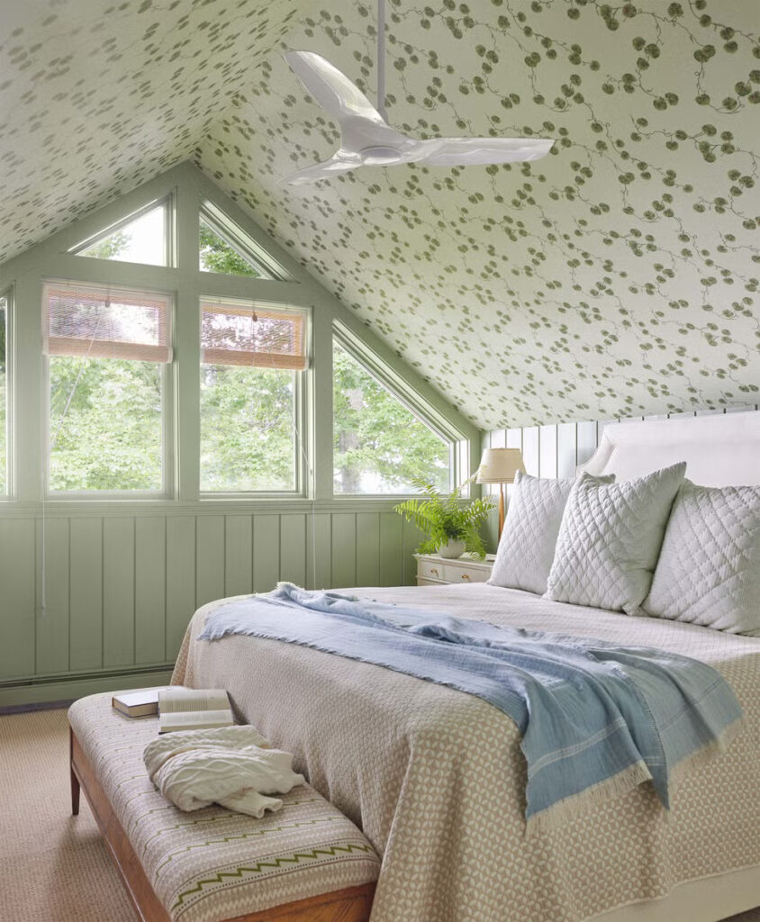 Όπως συμβαίνει με πολλά ακίνητα δίπλα σε λίμνες, η φύση και τα στοιχεία της φύσης έπαιξαν πρωταγωνιστικό ρόλο κατά τη διάρκεια της διαδικασίας ανακαίνισης και το χρώμα έγινε ο συνδετικός ιστός σε όλο το σπίτι. Η Simonds το συνδύασε με προσοχή, ενισχύοντας την ατμόσφαιρα του χώρου καθώς και την αισθητική του. «Είμαι πολύ συντονισμένη με το πώς αισθάνονται οι χώροι, όχι μόνο με το πώς φαίνονται» εξηγεί. «Το χρώμα σε κάνει να νιώθεις κάτι».