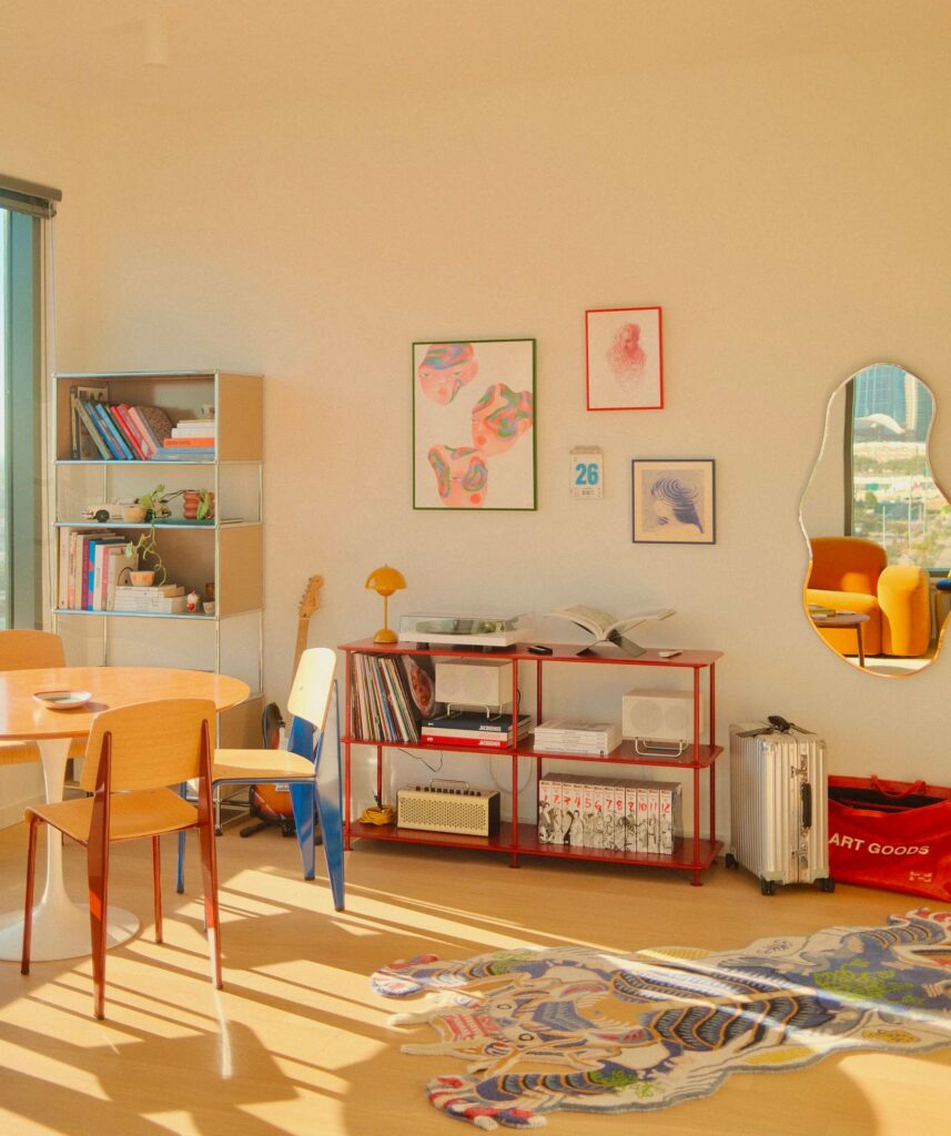 «Το σπίτι μου είναι σε μεγάλο βαθμό μια προέκταση του εαυτού μου, περίεργος, δημιουργικός και βαθιά εμπνευσμένος από την τέχνη, τα ταξίδια και τον πολιτισμό. Κλίνω προς το χρώμα, την υφή και τα κομμάτια που μου φαίνονται συλλεκτικά παρά υπερβολικά επιμελημένα» εξηγεί. Τα έργα τέχνης, τα βιβλία και τα αντικείμενα σε όλο τον χώρο αντανακλούν τα ενδιαφέροντα και τις εμπειρίες του, ενώ αναμειγνύει ζεστούς τόνους με παιχνιδιάρικες πινελιές για να δημιουργήσει έναν χώρο εκφραστικό.