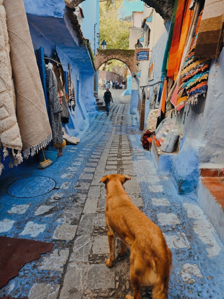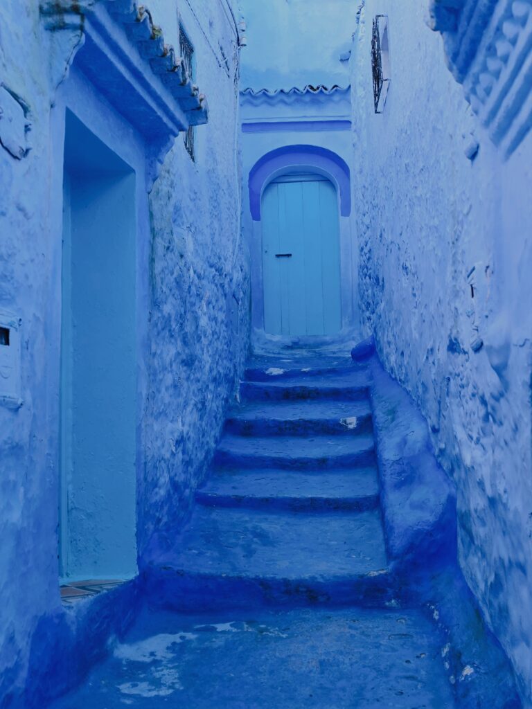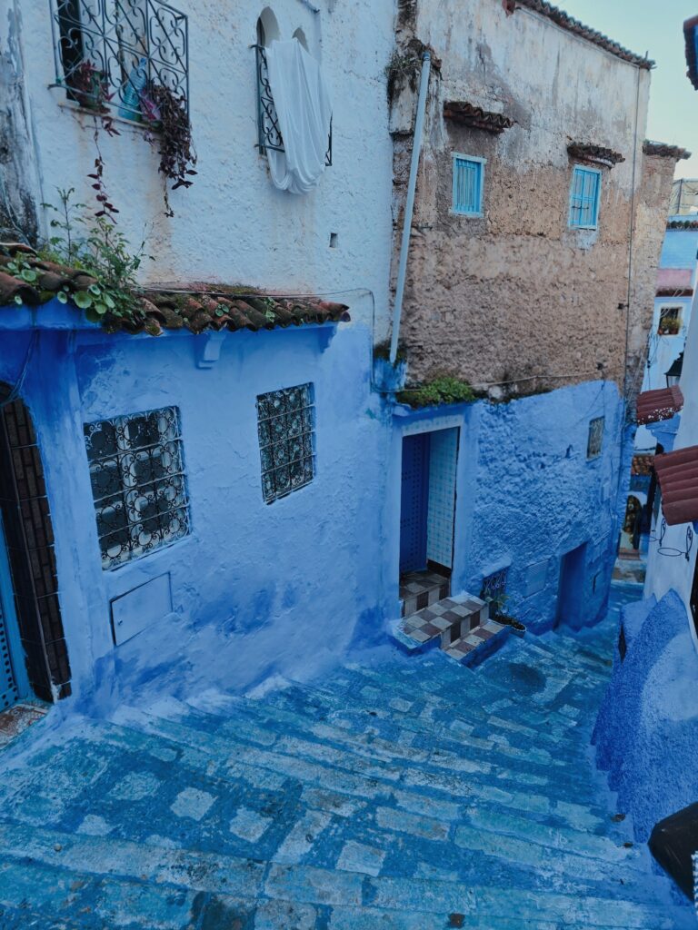 Στα βουνά του Ριφ, στο βόρειο Μαρόκο, βρίσκεται η Chefchaouen. Ακόμα και σε ένα σύντομο ταξίδι στο Μαρόκο, δεν θα μπορούσε να λείπει από το πρόγραμμα. Βρίσκεται στη λίστα με τα «must visit» μου εδώ και χρόνια, παρά τη μεγάλη απόσταση από το Μαρακές (7 ώρες διαδρομή). Αφήσαμε το λεωφορείο στον δρόμο, στο τελευταίο σημείο που μπορούν να κινηθούν αυτοκίνητα και περπατήσαμε προς την πόλη. Τα ουδέτερα, γήινα χρώματα σιγά – σιγά αλλάζουν, σαν να περνάς από μια πύλη προς σε έναν κόσμο μπλε. Είναι γνωστή, άλλωστε, σε όλο τον κόσμο ως «η μπλε πόλη».