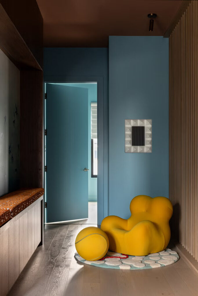 Στην κορυφή ενός νεόκτιστου πολυτελούς πύργου στο West Loop του Σικάγο, ένα διώροφο ρετιρέ υπάρχει σαν μια… ήσυχη επανάσταση, κόντρα στην ιδέα ότι η σύγχρονη διαβίωση πρέπει να είναι ουδέτερη, συγκρατημένη ή ασφαλής. Σχεδιασμένο από την ομάδα της Kuchar, αυτό το οικογενειακό σπίτι 288 τετραγωνικών μέτρων είναι μια πανδαισία χρωμάτων, υφών και φαντασίας – ένας χαρούμενος, καθηλωτικός κόσμος όπου κάθε επιφάνεια αφηγείται μια ιστορία και καμία λεπτομέρεια δεν ξεθωριάζει ήσυχα στο παρασκήνιο.