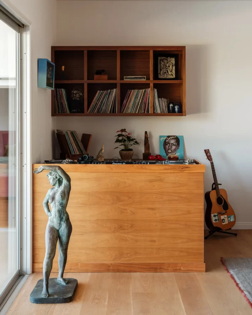 Ο σχεδιαστής εσωτερικών χώρων Davide Casaroli εξηγεί ότι ο σχεδιασμός του «θαλάμου» ακρόασης βινυλίου που απεικονίζεται πιο πάνω επηρεάστηκε από τον τρόπο που ζουν οι κάτοικοι του Λος Άντζελες. «Όσοι από εμάς είμαστε νυχτοπούλια συχνά βρίσκουμε τον εαυτό μας να διοργανώνει προσωπικές συγκεντρώσεις στο σπίτι στις 2 το πρωί, και ένα δωμάτιο ακρόασης είναι σχεδόν απαραίτητο» λέει ο Davide, αποδεικνύοντας ότι η τέχνη του δωματίου ακρόασης υπερβαίνει κατά πολύ μια απλή τάση εσωτερικής διακόσμησης. Είναι ένα βασικό μέρος της σύνδεσης.