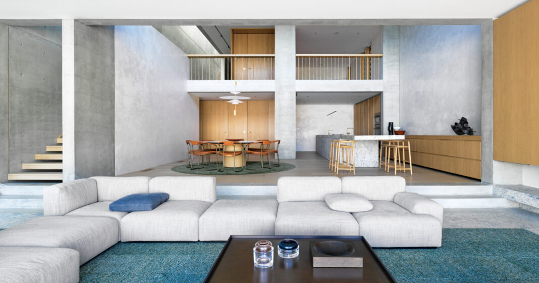 Η ζωντάνια του λιμανιού θα μπορούσε να κατακλύσει τους κατοίκους και ως εκ τούτου εξισορροπείται από μια χαλαρωτική, συγκρατημένη παλέτα υλικών στην οποία τα φινιρίσματα στο εσωτερικό του σπιτιού καθοδηγούνται από τη μορφή.