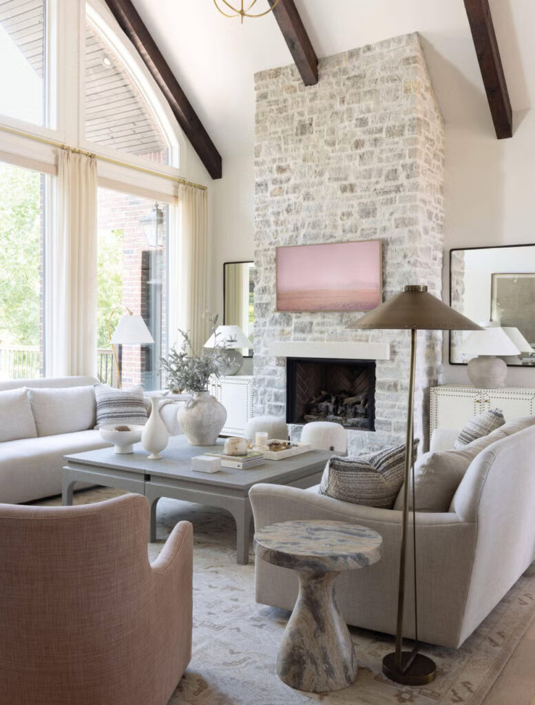 Στους κύριους χώρους διαβίωσης, επικεντρώθηκε στη διόρθωση της κλίμακας και της λειτουργικότητας, αντί να αλλάξει τον χαρακτήρα των δωματίων. Το μεγαλύτερο σαλόνι είχε ψηλά ταβάνια και γενναιόδωρες διαστάσεις, αλλά τα έπιπλα δεν ταίριαζαν με τις αναλογίες του. Η αντικατάσταση των μικρότερων κομματιών με μεγάλα καθίσματα μεταμόρφωσε τη δυναμική του χώρου.