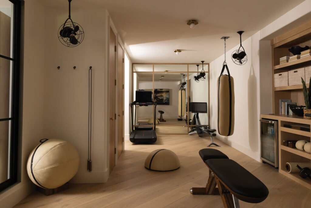 Το κάτω επίπεδο, από την άλλη πλευρά, χρειαζόταν πλήρη ανακαίνιση. «Κανείς δεν ήθελε να κατέβει εκεί κάτω – έμοιαζε με μπουντρούμι» λέει η Bean. Ανοίγοντας και επεκτείνοντας τον χώρο, τον μετέτρεψε σε μια πραγματική επέκταση του σπιτιού, δημιουργώντας χώρο για παιχνίδι, άσκηση και ηρεμία με τρόπους που οι κύριοι όροφοι δεν μπορούσαν πάντα να φιλοξενήσουν.
