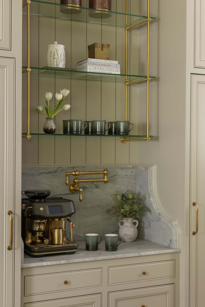 Στην κουζίνα, η Bean είδε ένα δωμάτιο που λειτουργούσε στην όψη και όχι στην ουσία. Οι αποθηκευτικοί χώροι ήταν παντού, αλλά όχι οργανωμένοι με βάση τον τρόπο που μαγειρεύει και διασκεδάζει η οικογένεια. Αντίθετα, η διαρρύθμιση τραβούσε την προσοχή σε πάρα πολλές κατευθύνσεις. Η λύση της δεν ήταν να προσθέσει νέα χαρακτηριστικά, αλλά να απλοποιήσει ό,τι υπήρχε ήδη, καθαρίζοντας την ακαταστασία για να διασφαλίσει ότι κάθε στοιχείο θα έπαιρνε τη θέση του.