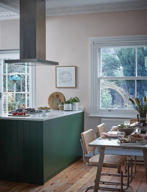 Μπορεί να ακούγεται λίγο παράξενο, αλλά στην πράξη, το ροζ και το πράσινο μπορούν να δημιουργήσουν ένα ευχάριστα φιλόξενο χρωματικό συνδυασμό σε μια κουζίνα. Πιο συγκεκριμένα, ένα βαθύ πράσινο σε συνδυασμό με ένα απαλό ροζ. Αυτός ο συνδυασμός είναι αγαπημένος του Richard Davonport, διευθύνοντος συμβούλου της Davonport, ο οποίος εξηγεί: «Όταν αυτοί οι τόνοι τοποθετούνται προσεκτικά, δημιουργούν την αίσθηση μιας γειωμένης και ήσυχα εκφραστικής κουζίνας, αντί για υπερβολικά διακοσμητικής».
