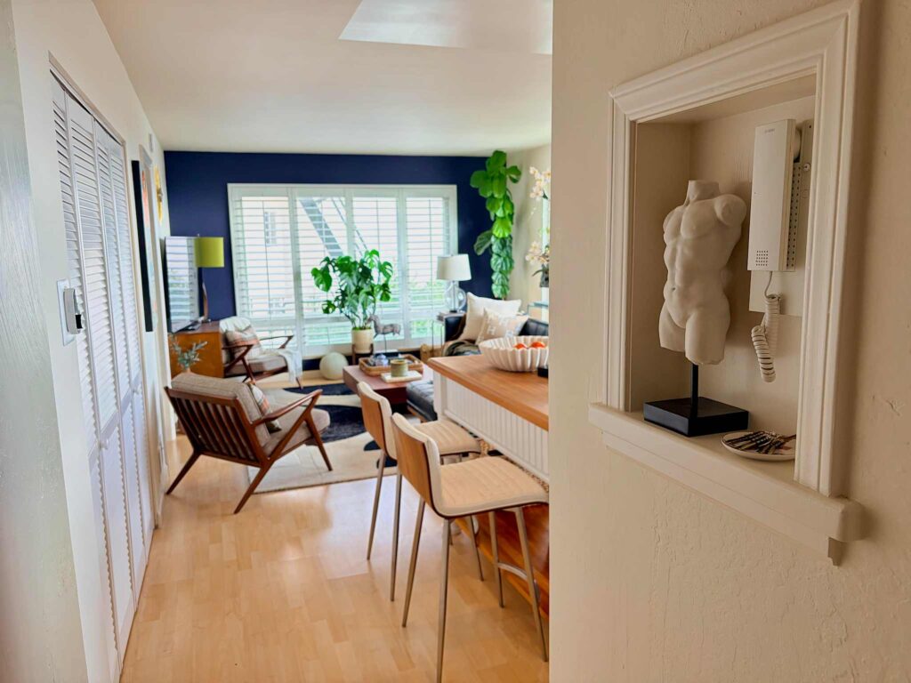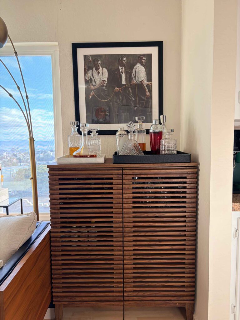 Εξυπακούεται ότι ο Taylor ήταν απελπισμένος. «Πώς θα έκανα ένα προσωρινό σπίτι για ένα χρόνο ή περισσότερο να μου φαίνεται σαν στο σπίτι μου;» ρώτησε. Το προηγούμενο διαμέρισμά του ήταν 88 τετραγωνικά μέτρων, με δύο υπνοδωμάτια, μια μεγάλη τραπεζαρία και μια μεγάλη βεράντα. Αναρωτήθηκε πώς θα χωρούσε όλα τα έπιπλα, τα έργα τέχνης και τη διακόσμηση σε αυτό το διαμέρισμα – ένα πολύ μικρότερο διαμέρισμα 52 τετραγωνικών μέτρων με ένα υπνοδωμάτιο στο Σαν Φρανσίσκο, μόλις τρία τετράγωνα μακριά από το τελευταίο του σπίτι. Ο Taylor λέει ότι ήταν ζωτικής σημασίας για την ψυχική του υγεία, ανεξάρτητα από το πόσο καιρό επρόκειτο να ζήσει σε αυτόν, να κάνει τον νέο χώρο άνετο και ζωντανό… και χρειαζόταν να τον νιώθει έτσι το συντομότερο δυνατό.