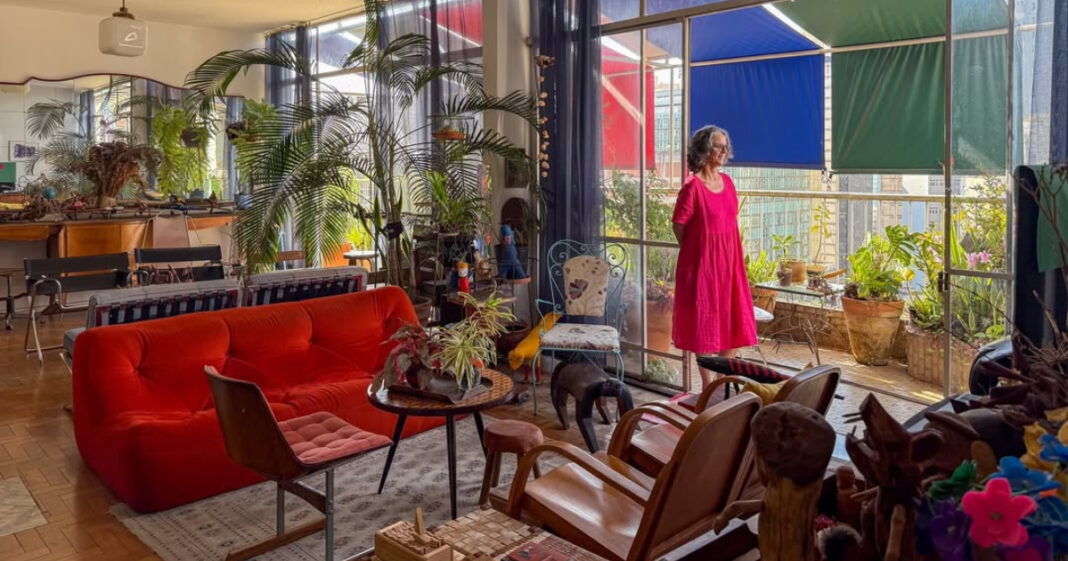 Η περιήγηση στο διαμέρισμα της Lucia Loureiro και του Sérgio μοιάζει με μια ξενάγηση σε μια σειρά από ιστορίες. Ένα ρετιρέ στην καρδιά του Μπέλο Οριζόντε, σε ένα παλιό κτίριο, γεμάτο αναμνήσεις, στοργή και ζωή. Όλα εκεί χτίστηκαν σιγά σιγά, με ευρήματα, αντίκες έπιπλα, αντικείμενα που κάποτε ζούσαν σε άλλα σπίτια και τώρα συνθέτουν έναν ζεστό, φιλόξενο χώρο. Κάθε γωνιά κρύβει μια έκπληξη, μια λεπτομέρεια που σε προσκαλεί να κοιτάξεις πιο προσεκτικά και να συνειδητοποιήσεις πώς η διακόσμηση μπορεί να γίνει με έναν στοργικό, βιώσιμο τρόπο χωρίς να ξοδέψεις μια περιουσία. Το μπαλκόνι δε, είναι ένα κεφάλαιο από μόνο του: τεράστιο, γεμάτο φυτά, τόσο πράσινο και ζωντανό που μοιάζει με ιδιωτικό δάσος στην καρδιά της πόλης.