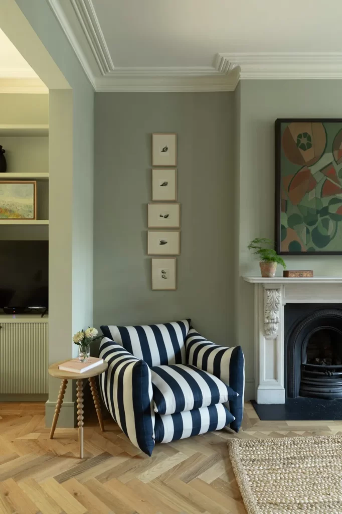 Ο πραγματικός χαρακτήρας τους που εξισορροπεί τη διάθεση αποκαλύπτεται μόλις τοποθετηθούν στους τοίχους. «Είναι ένα σταθερό είδος χρώματος και το πράσινο δεν αλλάζει τόσο πολύ στο φως όσο τα περισσότερα ουδέτερα, γεγονός που κάνει ένα δωμάτιο να φαίνεται αρμονικό και ομοιόμορφο» λέει η Rebecca.