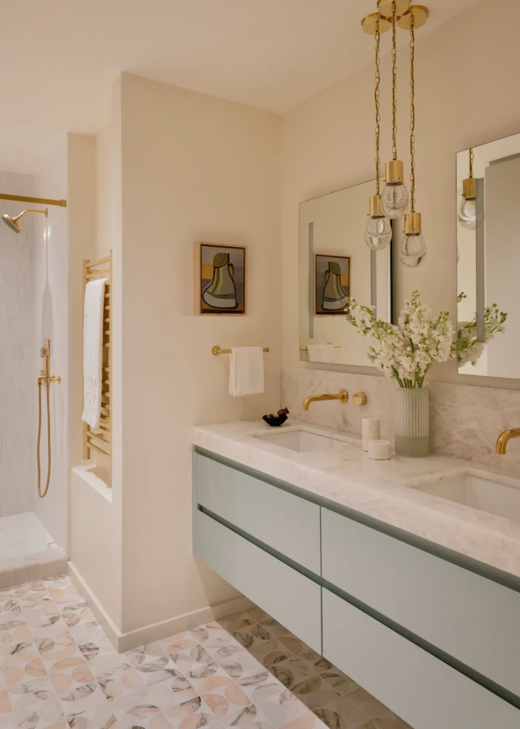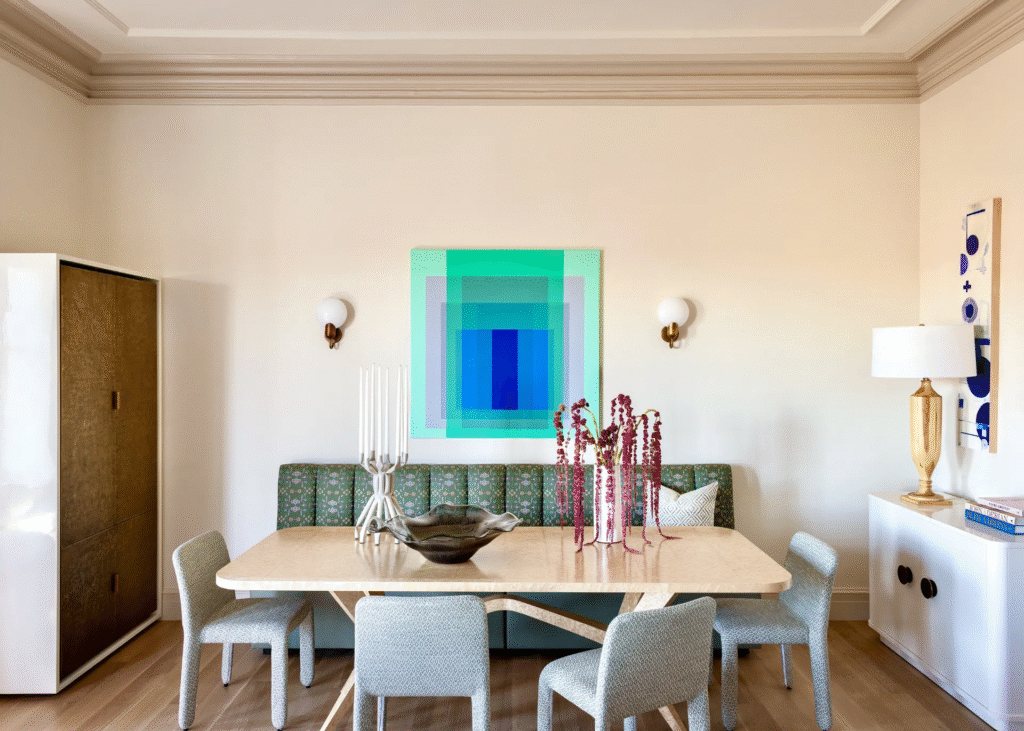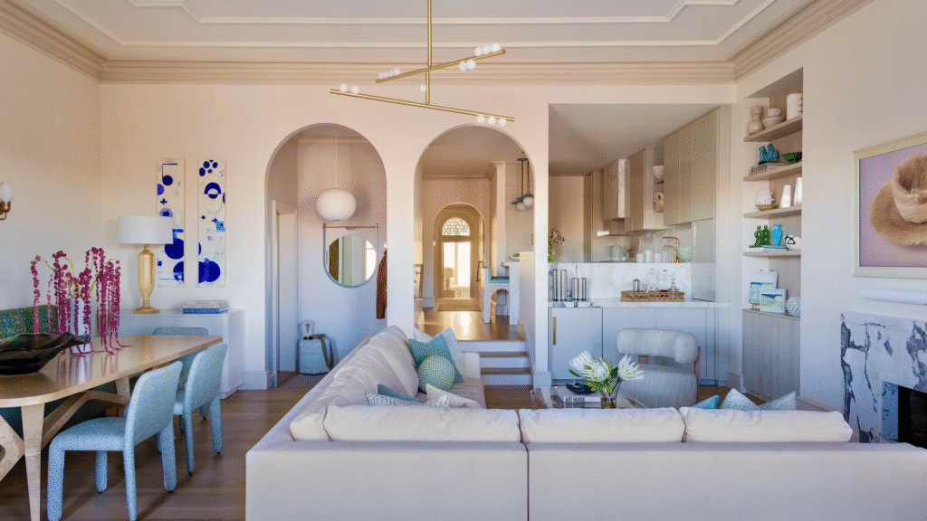 «Η πελάτισσα ήθελε το σπίτι να είναι φωτεινό, ευάερο και ουδέτερο, αλλά όχι πολύ σοβαρό και όχι πολύ γεμάτο, με διακριτικές πινελιές του αγαπημένου της χρώματος, του τιρκουάζ, σε όλο το σπίτι» λέει η Cara Fineman της DAG Design.
