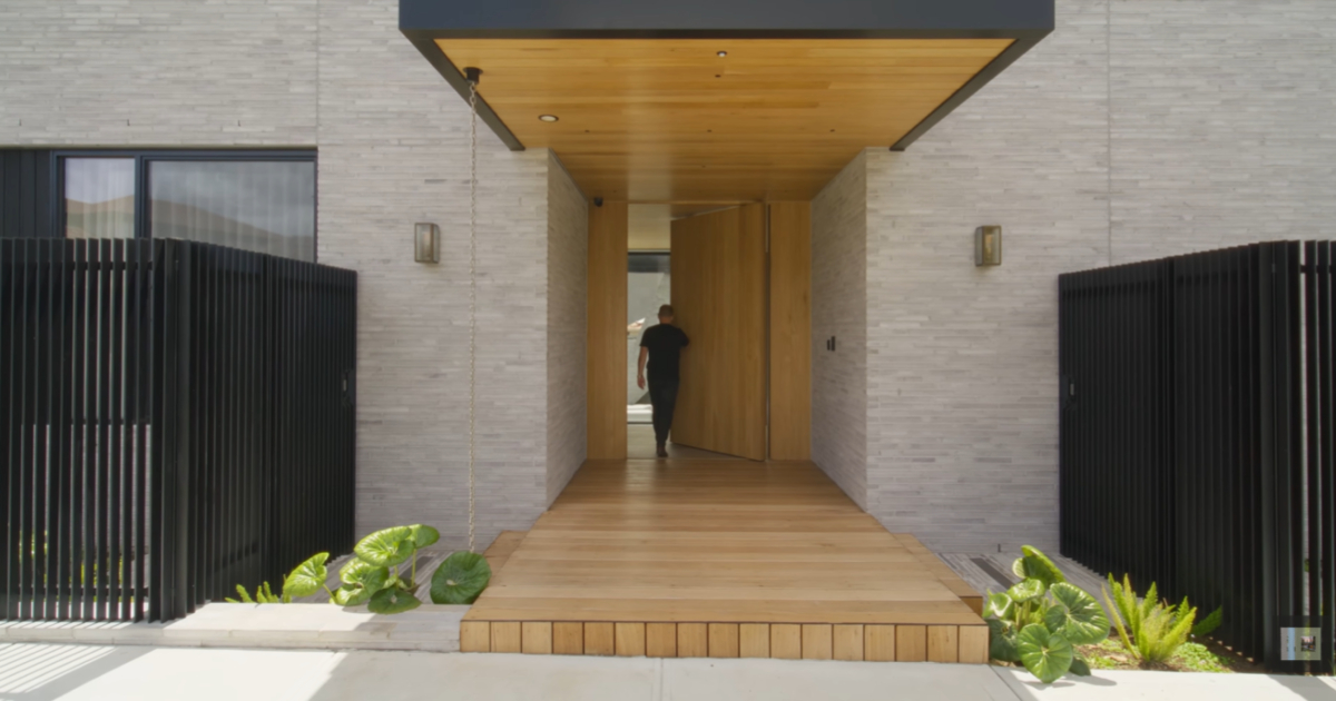 Η στρατηγική σχεδιασμού τοποθετεί την είσοδο στο κέντρο της κατοικίας, αποκαλύπτοντας αμέσως μια αίσθηση ανοιχτότητας διατηρώντας παράλληλα την ιδιωτικότητα από τον δρόμο. Αυτό το προσεκτικά ισορροπημένο κατώφλι ορίζει μέσα σε ένα σπίτι με αυλή που μοιάζει με ιδιωτικό κόσμο, όπου η αρχιτεκτονική προστατεύει και αγκαλιάζει σε ίσο βαθμό. Τα υπνοδωμάτια και οι χώροι χαλάρωσης είναι τοποθετημένα στη μία πλευρά, ενώ η κουζίνα, η τραπεζαρία και το καθιστικό εκτείνονται προς την κύρια αυλή.