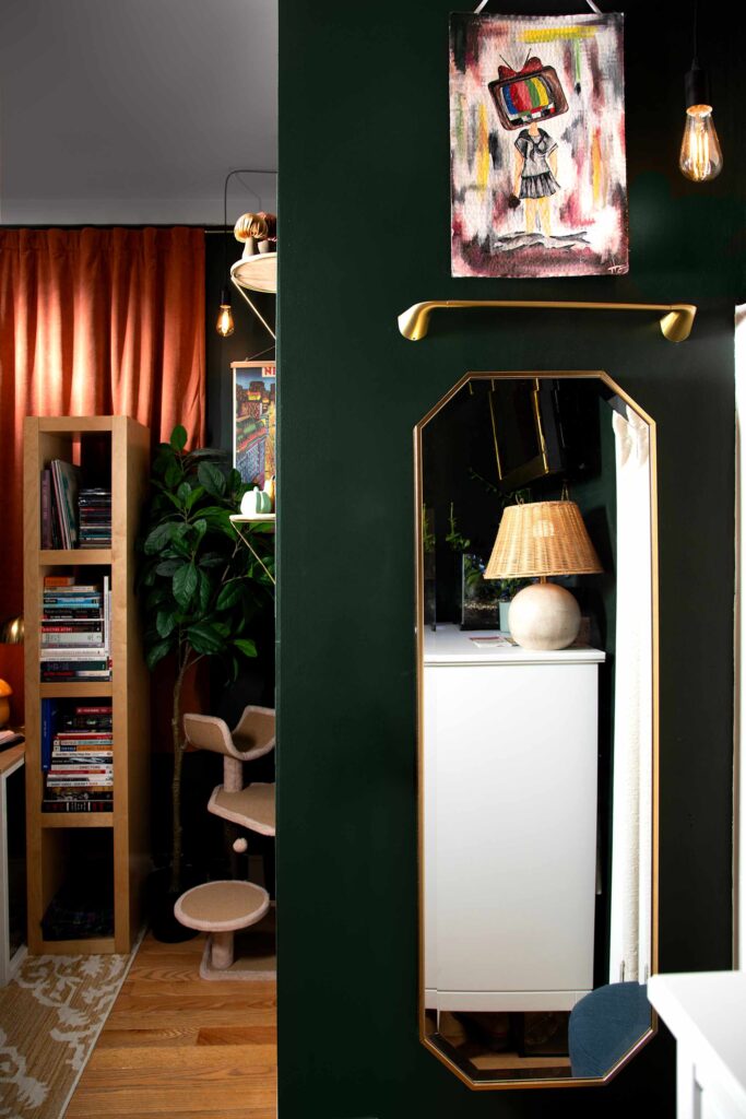 «Όταν πήρα τα κλειδιά, υπήρχαν άπειρα ημιτελή έργα γύρω από το σπίτι. Το χρώμα ήταν ανομοιόμορφο και με λεκέδες, χρειαζόταν καλό καθάρισμα και υπήρχαν λεκέδες σε όλους τους τοίχους από την ηλικιωμένη γάτα της προηγούμενης ενοίκου» ξεκινά η Emily Fischer, για το διαμέρισμα των 21 τετραγωνικών μέτρων που νοικιάζει εδώ και τεσσεράμισι χρόνια, και μοιράζεται με τις γάτες της, την Anya και τη Hallie.