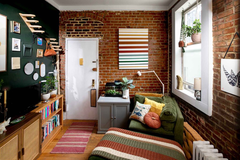 Η Emily βρήκε το μικρό διαμέρισμα όταν έψαχνε για ένα μέρος για να ζήσει μόνη της για πρώτη φορά. «Ήμουν ανήσυχη όταν ξεκίνησα την αναζήτησή μου, ο προϋπολογισμός μου ήταν χαμηλός και ήξερα ότι ήθελα να ζήσω σε αυτήν την περιοχή, η οποία συχνά ενοικιάζεται ακριβά» λέει. «Μου άρεσε το εκτεθειμένο τούβλο, το μικρό μέγεθος και η κοινόχρηστη αυλή» εξηγεί, και συμπληρώνει πως δεν αποθαρρύνθηκε από το μικρό μέγεθος του σπιτιού. «Μου αρέσει να ζω σε στενούς χώρους επειδή σε κάνει να σκέφτεσαι πολύ γρήγορα. Τίποτα δεν μπαίνει ή βγαίνει από το σπίτι μου χωρίς σκέψη και όλα έχουν τη θέση τους».