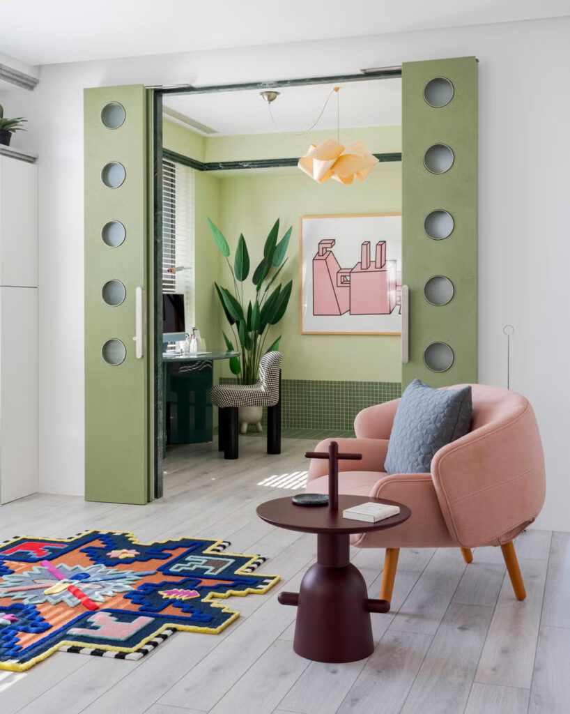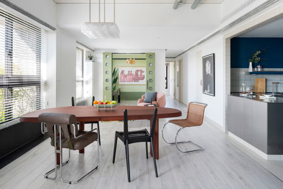 Η μεταφορά του τρόπου ζωής και των εκλεπτυσμένων γούστων του ζευγαριού σε ένα ομοιόμορφο περιβάλλον ήταν ευθύνη του ChingJu Chen, σχεδιαστή και ιδρυτή του In Order Studio. Με υπόβαθρο στην αρχιτεκτονική, η εκπαίδευσή του έβαλε μια σχεδόν εμμονική ευαισθησία στην τάξη, την κλίμακα και την αναλογία – αρχές που διέπουν όχι μόνο την προσέγγισή του αλλά και το ίδιο το όνομα του γραφείου του. Εμπνευσμένος από την αγάπη του πελάτη του για τον Ισπανό ζωγράφο Joan Miró, ο ChingJu ανέπτυξε ένα σχέδιο που βασίζεται στην ισορροπία και τη ρευστότητα.