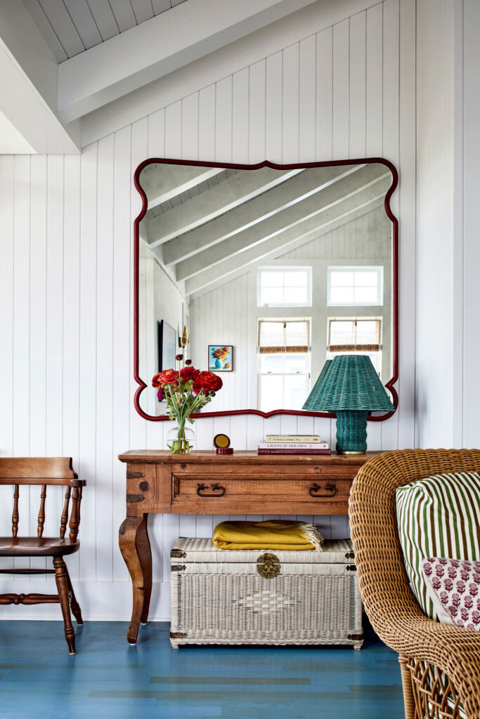 Όταν οι ιδιοκτήτες αυτού του γοητευτικού σπιτιού στην παραθαλάσσια πόλη Ναγκς Χεντ της Βόρειας Καρολίνας, αποφάσισαν να κατεδαφίσουν το εξοχικό τους και να ξεκινήσουν από την αρχή, είχαν μια καθοδηγητική οδηγία: να μην μοιάζει με νέα κατασκευή. «Ήθελαν το σπίτι να μοιάζει σαν να ήταν πάντα εδώ» λέει η Ariana Panoni της εταιρείας Winsome Interior Design για το ζευγάρι, το οποίο κάνει διακοπές στην κοινότητα εδώ και πολλά χρόνια. Ήθελαν οι φίλοι και η οικογένειά τους να νιώθουν χαλαροί – να μην το σκέφτονται δύο φορές να έρθουν από την παραλία και να ξαπλώσουν στον καναπέ όπως έκαναν πάντα, προσθέτει η συνεργάτιδα σχεδιασμού Kasey Bedford.