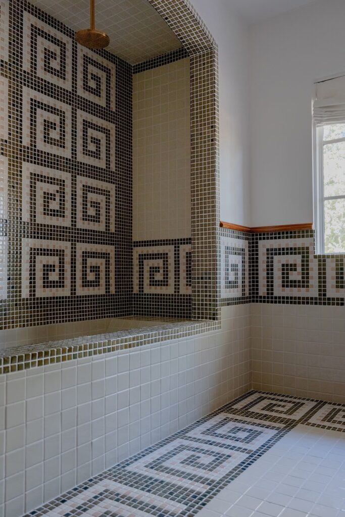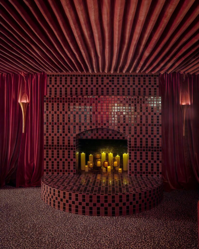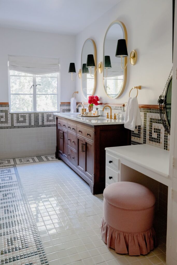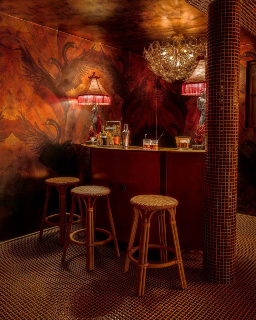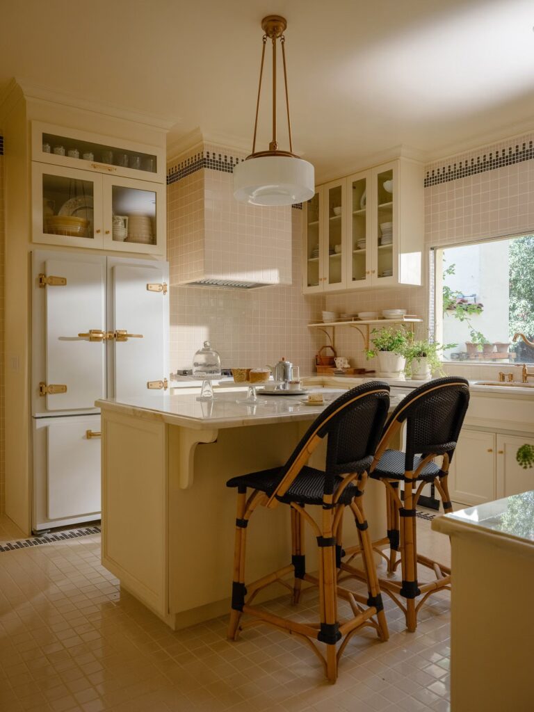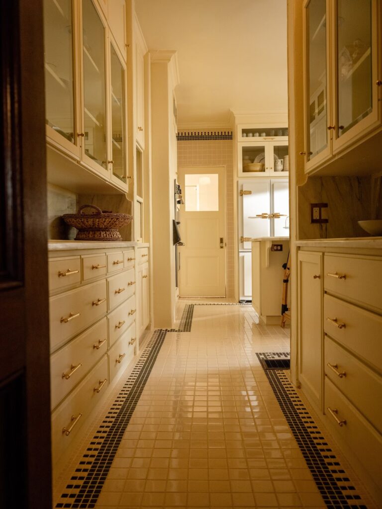 Αν και είχε υποστεί μια ισοπεδωτική ανακαίνιση τη δεκαετία του ’90, μπορούσε να αισθανθεί ένα μυστικισμό του παλιού Χόλιγουντ μέσα του. Η σχεδιάστρια είχε πολλή δουλειά για αυτή την ανακαίνιση, ειδικά αφού η κουζίνα, το κύριο μπάνιο και το υπόγειο σε στυλ speakeasy καταστράφηκαν εντελώς. Αλλά ο χώρος που προκύπτει, πλούσιος σε ταπετσαρίες εμπνευσμένες από το ύφασμα, χαλιά με λεοπάρ μοτίβο και ψηφιδωτά πλακάκια κατά παραγγελία, αντηχεί με πλούσιο, πολυεπίπεδο ρομαντισμό. Κάθε δωμάτιο ξεχειλίζει από ιστορικές αναφορές σχεδιασμού που θα έκαναν έναν λάτρη των κλασικών ταινιών να λιποθυμήσει: Για παράδειγμα, τα μιούζικαλ RKO της δεκαετίας του 1930 ενέπνευσαν την «υπέροχη Art Deco/νεοκλασική γραμμή» σε όλη την έκταση.