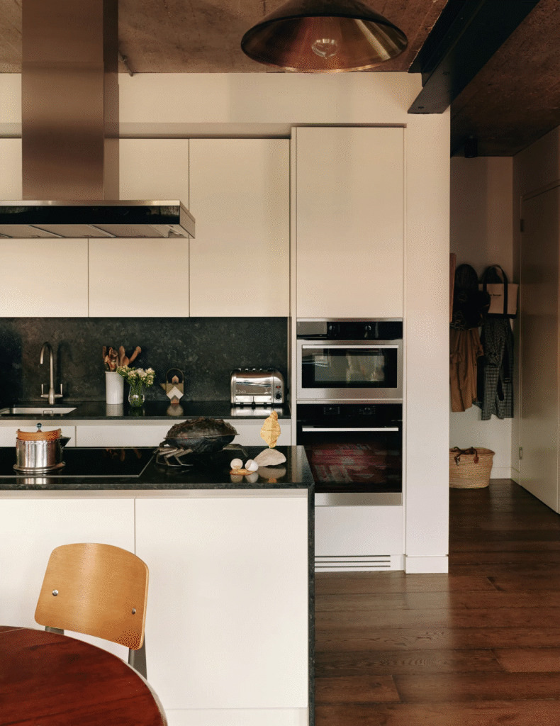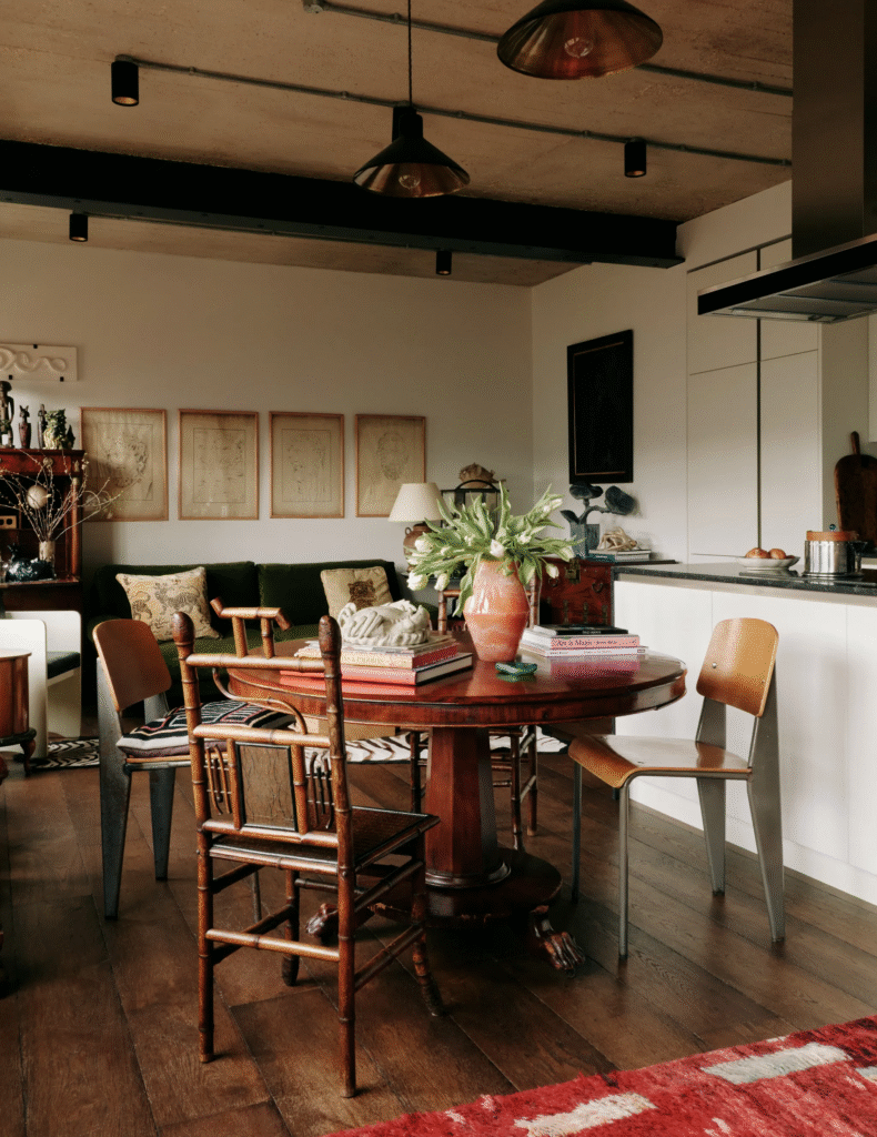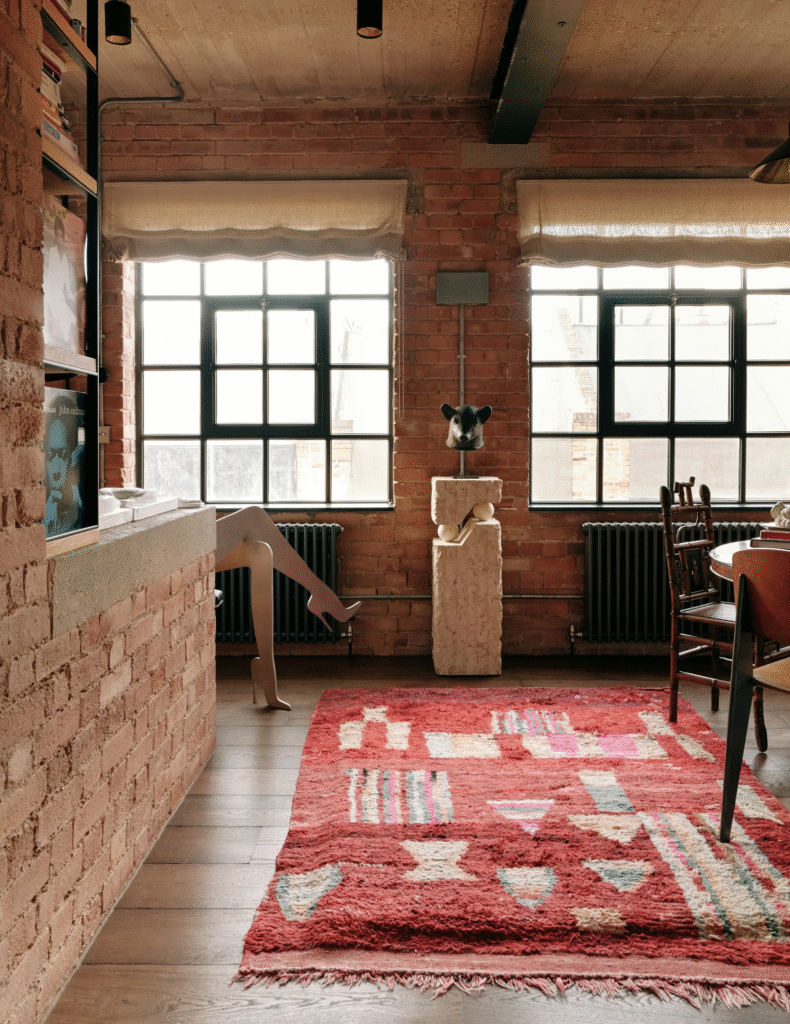 Πρόσφατα παντρεμένη με τον σχεδιαστή παραγωγής Arthur de Borman, η interior designer Joyce Sitterly είχε μεταναστεύσει από το αγαπημένο της Μανχάταν στο Λονδίνο. Αρχικά, εγκαταστάθηκε στο σπίτι του Arthur στο ανατολικό Λονδίνο, αλλά σύντομα αποφάσισε ότι αν έπρεπε να ζήσει στην κρύα πρωτεύουσα, ήθελε να το κάνει σωστά. Αυτό σήμαινε ένα γεωργιανό σπίτι βγαλμένο κατευθείαν από ταινία του Richard Curtis, κάτι που αυτό το διαμέρισμα σε ένα πρώην εργοστάσιο σωλήνων, με τις τσιμεντένιες οροφές και τα παράθυρα, σίγουρα δεν ήταν. Κι όμως, κατά κάποιο τρόπο, ο σκελετός έμοιαζε σωστός. Έτσι άρχισαν να το νοικιάζουν κατά τη διάρκεια του πρώτου χειμώνα της Covid.