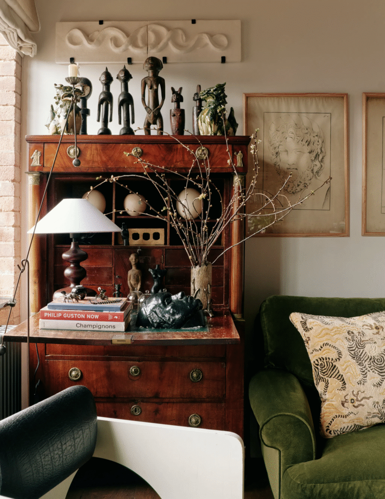 «O Arthur και εγώ έχουμε τόσα, τόσα πολλά πράγματα» παραδέχεται. Όποιος έχει μετακομίσει ποτέ με έναν σύντροφο θα καταλάβει τη λεπτή διπλωματία που απαιτείται για να συνδυαστούν τα περιεχόμενα δύο ζωών σε ένα συνεκτικό σύνολο. Πόσο μάλλον όταν και οι δύο πλευρές έχουν σχεδιαστική σκέψη, ισχυρές απόψεις και 20 χρόνια συλλογής πίσω τους.
