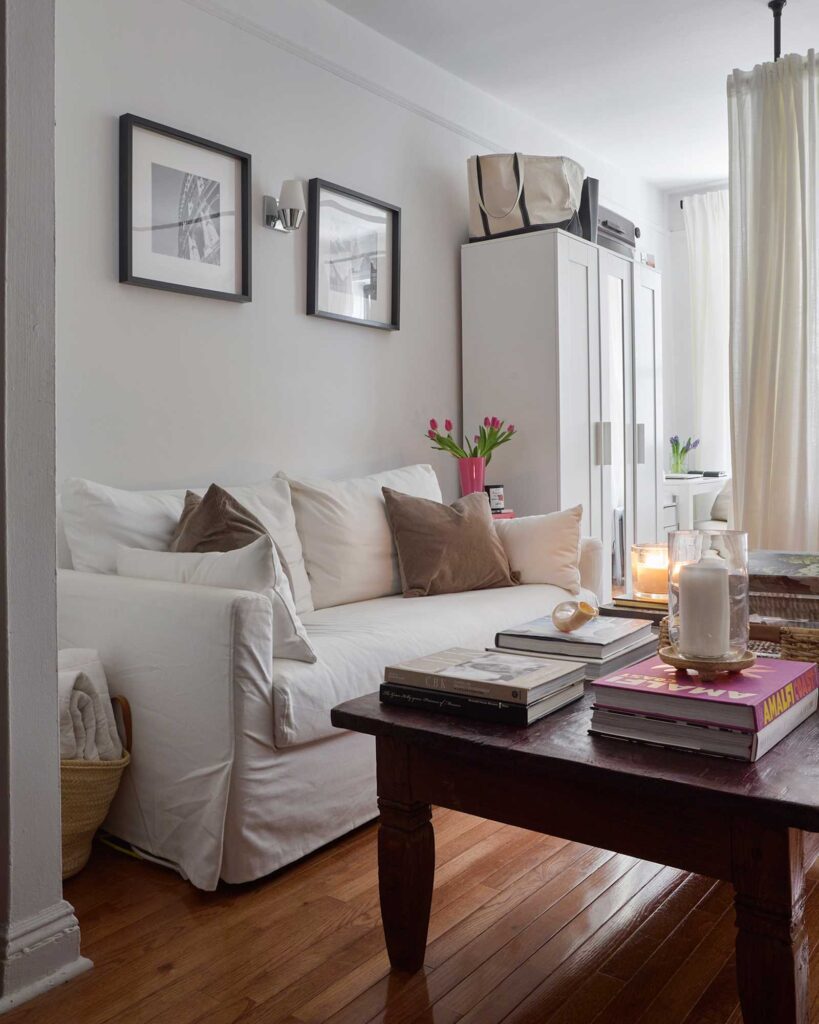 «Η Νέα Υόρκη μπορεί να είναι πραγματικά υπερβολικά διεγερτική και ήθελα να γυρίσω σπίτι σε έναν χώρο που να μου δίνει την αντίθετη αίσθηση. Έχω πολλά λευκά και ανοιχτόχρωμα έπιπλα και όχι πάρα πολλά στους τοίχους. Επίσης, επειδή είναι στούντιο, μπορεί να νιώσει γρήγορα γεμάτο. Έτσι, προσπάθησα να είμαι πολύ επιλεκτική με αυτά που φέρνω και όλα πρέπει να εξυπηρετούν περισσότερους από έναν σκοπούς».