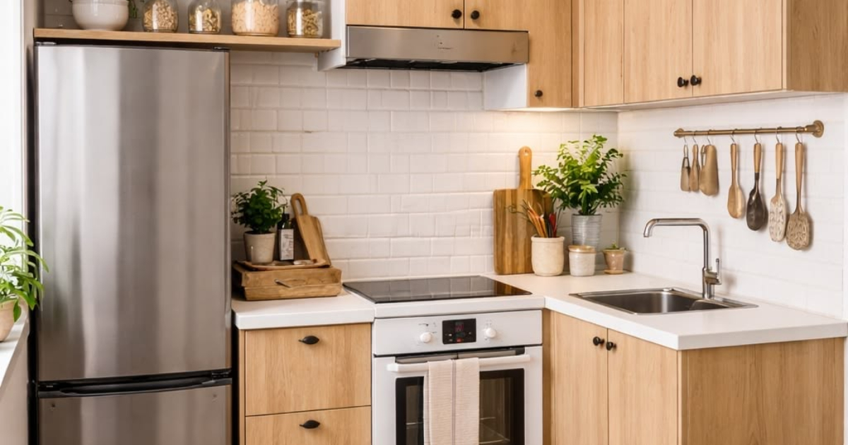 Η διαμόρφωση της κατάλληλης κουζίνας όταν τα τετραγωνικά μέτρα είναι περιορισμένα, δεν είναι πάντα εύκολη υπόθεση. Η συγκεκριμένη αποτελεί ένα εξαιρετικό παράδειγμα μοντέρνου, σκανδιναβικού σχεδιασμού, όπου η λειτουργικότητα συναντά τη ζεστή αισθητική. Κυριαρχούν οι ανοιχτόχρωμες ξύλινες επιφάνειες στα ντουλάπια, οι οποίες συνδυάζονται αρμονικά με τις λευκές επιφάνειες εργασίας και το κλασικό λευκό πλακάκι “subway” στο backsplash. Γιατί είναι όμως ιδανικό σχέδιο για πιο μικρούς χώρους;