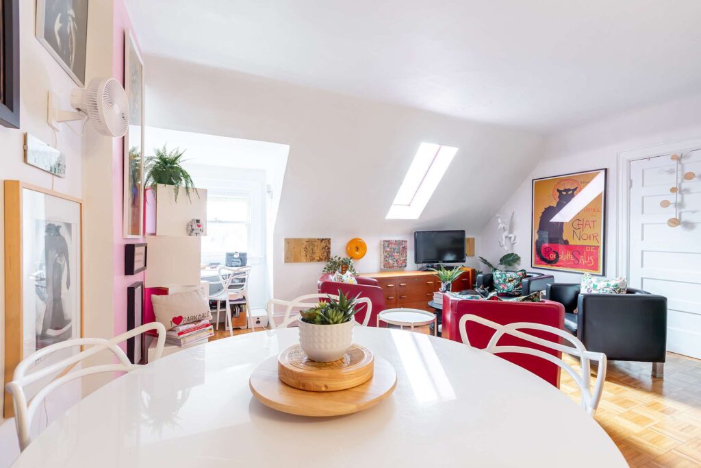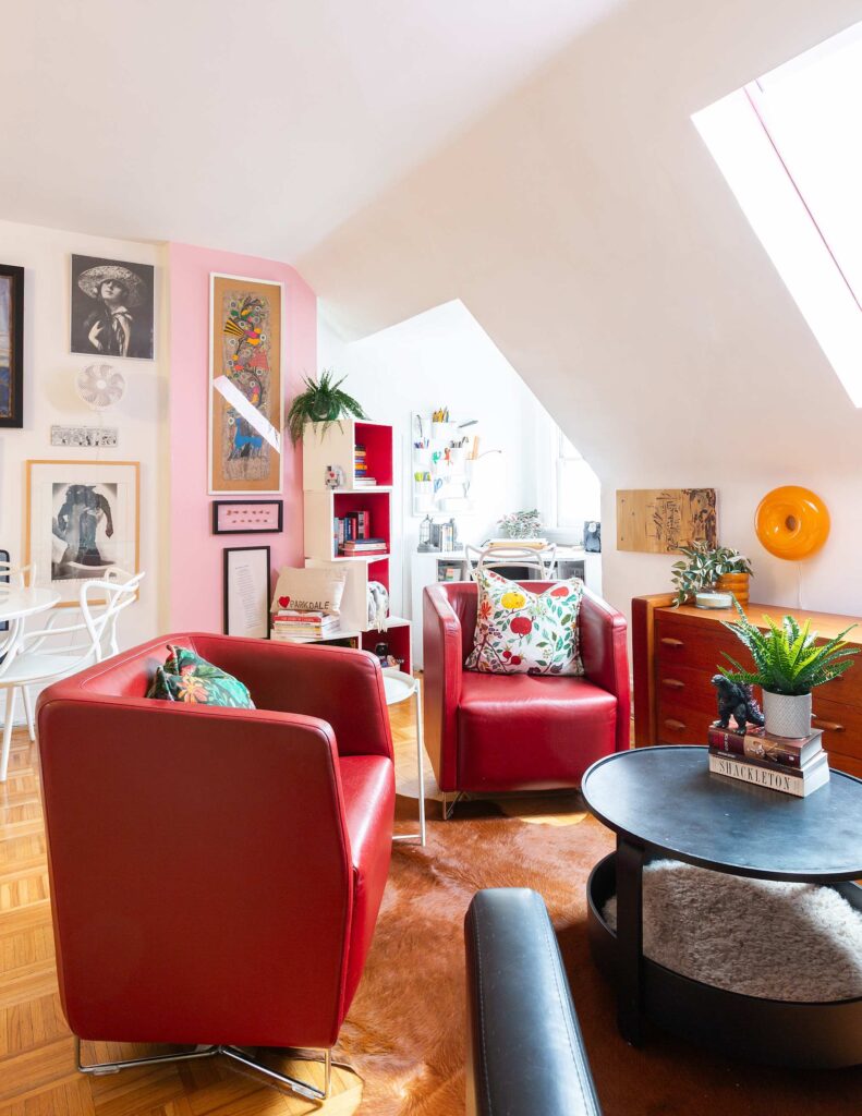 Είναι λίγο δύσκολο να περιγράψουμε τη μετακόμιση της Benita και του Brian Lynch από το τελευταίο τους σπίτι σε αυτό το διαμέρισμα σε σοφίτα. Καταρχάς, μετακόμιζαν το 2020 στο αποκορύφωμα των περιορισμών λόγω της πανδημίας COVID, οπότε ήταν δύσκολο να βρεθεί μεταφορέας. Από την άλλη, ενοικίαζαν ένα διαμέρισμα τριών υπνοδωματίων για 30 χρόνια – πολύς χρόνος για να συσσωρεύσουν έπιπλα, διακοσμητικά, έργα τέχνης και πολλά άλλα. Όταν το διαμέρισμα της αδερφής της Benita στον τελευταίο όροφο του σπιτιού του 1904 έγινε διαθέσιμο, το ζευγάρι ενδιαφέρθηκε αλλά ήταν διστακτικό. Το μέγεθος της νέας μονάδας ήταν μόλις 46 τετραγωνικά μέτρα, σημαντικά μικρότερο από αυτό που μοιράζονταν.