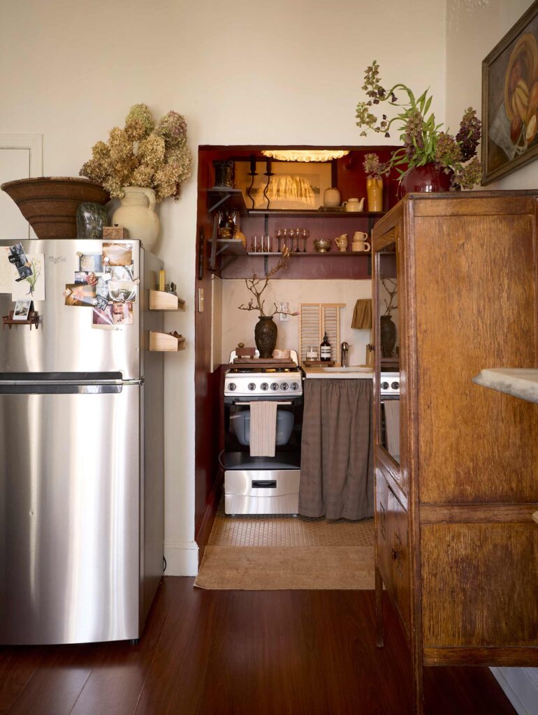 «Επειδή νοικιάζω, πολλές από τις λύσεις μου έπρεπε να είναι κατάλληλες για ενοικιαζόμενα, κάτι που με ανάγκασε να σκεφτώ δημιουργικά. Επικεντρώθηκα στο χρώμα, τον φωτισμό και τα ράφια ως τρόπους για να μεταμορφώσω τον χώρο χωρίς να κάνω μόνιμες αλλαγές. Στην αρχή, ήμουν λίγο επιφυλακτική σχετικά με το πόσα μπορούσα να κάνω, αλλά ο ιδιοκτήτης μού είπε ότι είχα πλήρη ελευθερία να το κάνω δικό μου».