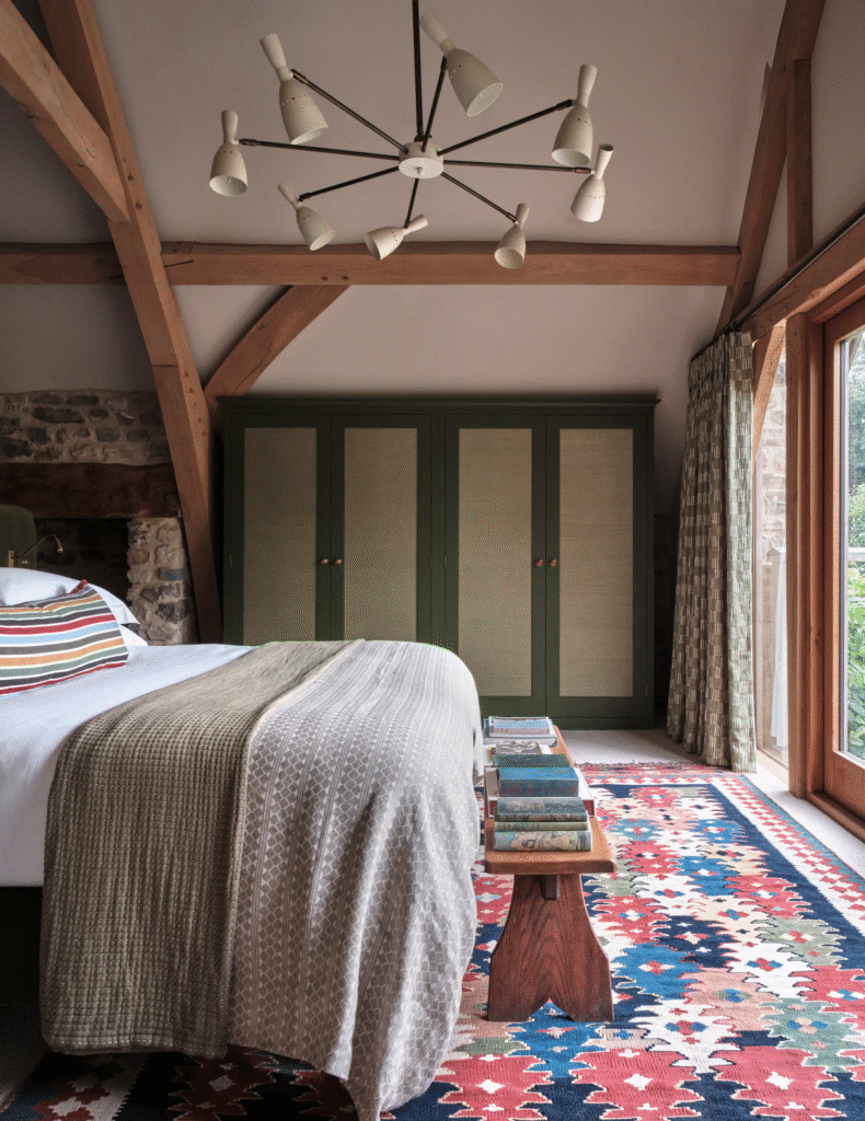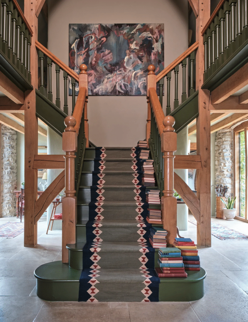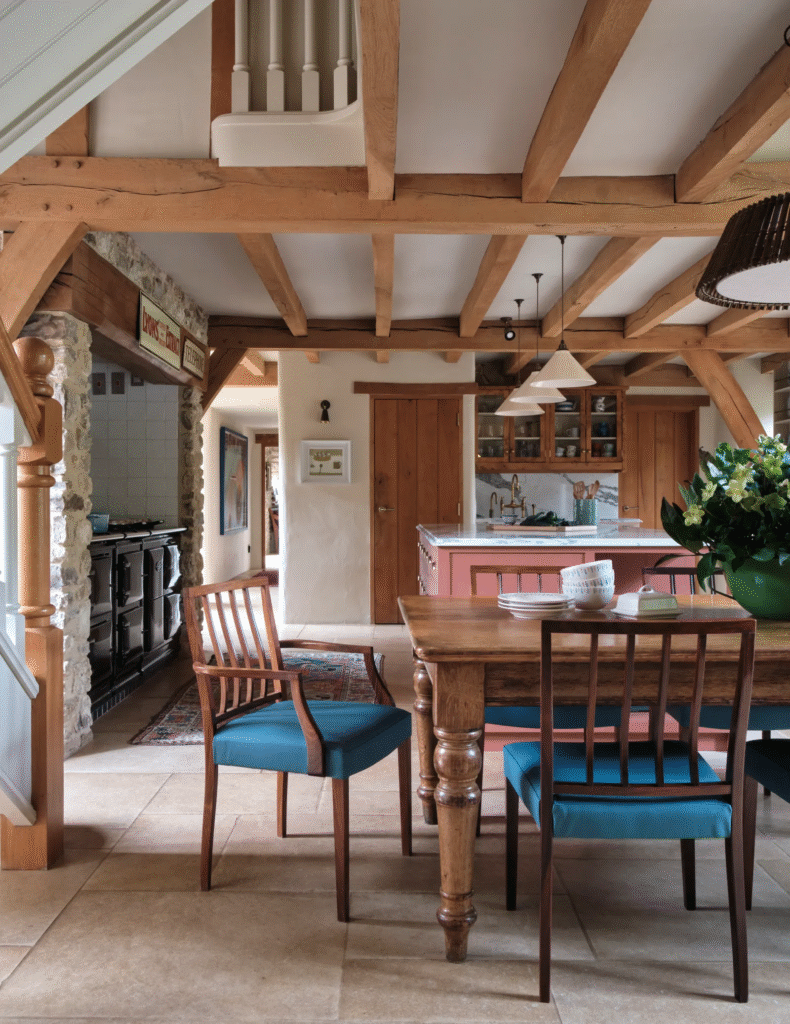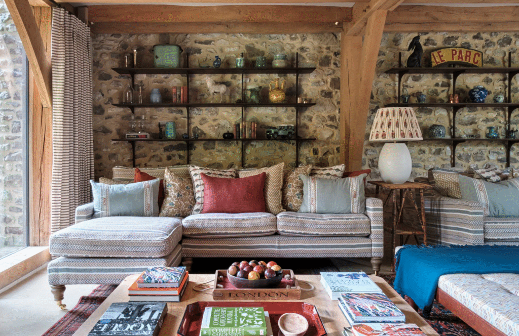Στο αγρόκτημα του 18ου αιώνα, η διακόσμηση αποτελούνταν σε μεγάλο βαθμό από δωμάτια βαμμένα με κιτρινισμένη μανόλια. Αναγνωρίζοντας τις δυνατότητες του αχυρώνα αλλά αναγνωρίζοντας ότι ήταν ένα μεγάλο εγχείρημα, ο Joe ζήτησε βοήθεια και μέσω φίλων γνώρισε την διακοσμήτρια εσωτερικών χώρων Polly Ashman, ιδρύτρια του ομώνυμου στούντιό της με έδρα το Λονδίνο.