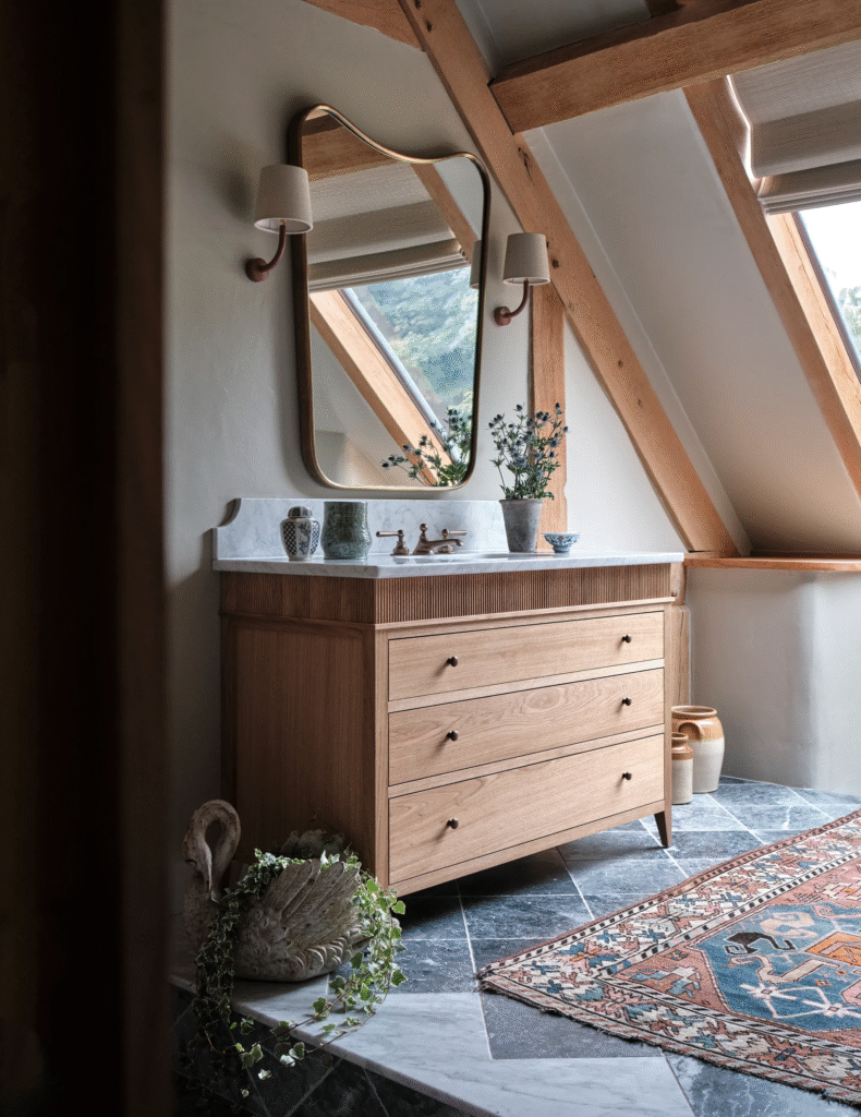 «Ήμασταν αρκετά τυχεροί που το σπίτι ήταν σε καλή κατάσταση» λέει. «Δεν χρειάστηκε να κάνουμε πράγματα όπως να βγάλουμε τις υδραυλικές εγκαταστάσεις, πράγμα που σήμαινε ότι μπορούσαμε πραγματικά να επικεντρωθούμε στους εσωτερικούς χώρους».