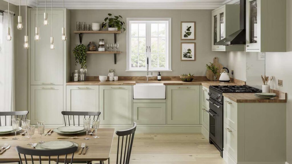 «Μπορούν να ξεθωριάσουν τα ντουλάπια, κάνοντας μια κουζίνα να μοιάζει με μια πρώιμη αναβίωση της τάσης του αγροτόσπιτου» λέει. Αντ’ αυτού, συνιστά να επιλέγετε πράσινα σε πλουσιότερες αποχρώσεις και πιο ισορροπημένους υποτόνους: «Δίνουν περισσότερη ζωή σε μια κουζίνα».