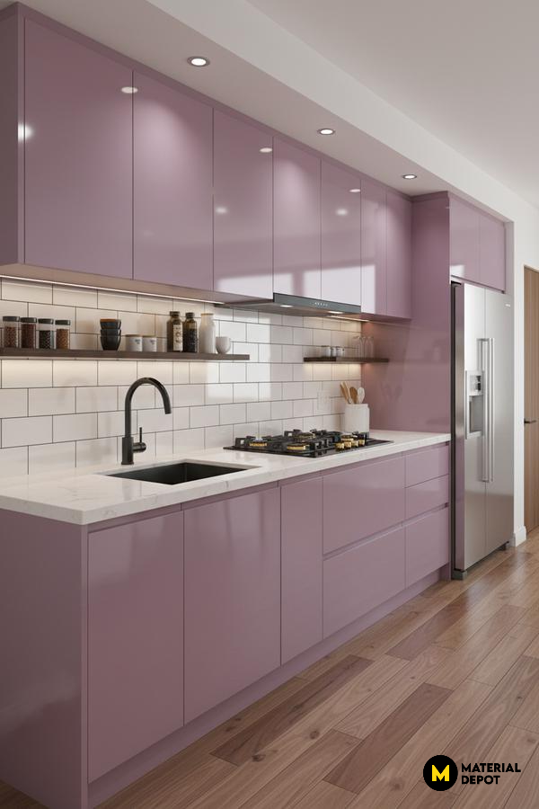 Το dusty μοβ είχε μια σημαντική άνθηση στα τέλη της δεκαετίας του 1980 και στις αρχές της δεκαετίας του 1990, γι’ αυτό και σήμερα δίνει μια έντονα ρετρό αίσθηση. Η Cataldo σημειώνει ότι οι γκριζο-ροζ υποτονικές αποχρώσεις μπορούν να θαμπώσουν το φυσικό φως και μερικές φορές να έρχονται σε αντίθεση με τα μοντέρνα υλικά και φινιρίσματα.